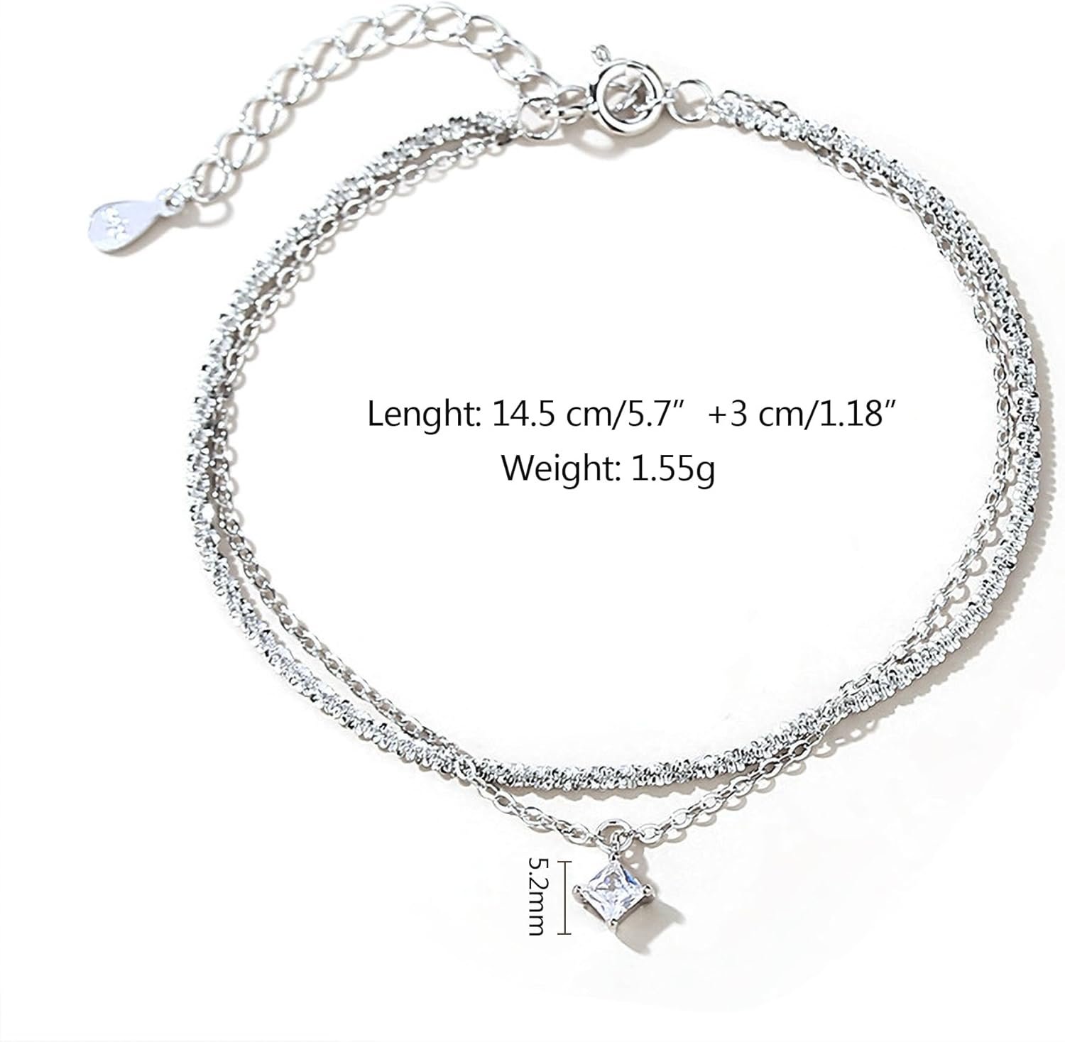 IPEPPY Dainty 925 Sterling Silver Birthstone Layered Bracelets for Women Cubic Zirconia Solitaire Diamond Bracelet Simple Sparkle Twisted Charm Chain Bracelets Jewelry Birthday christmas anniversary graduation valentine’s day Gifts for mom daughter sister friends