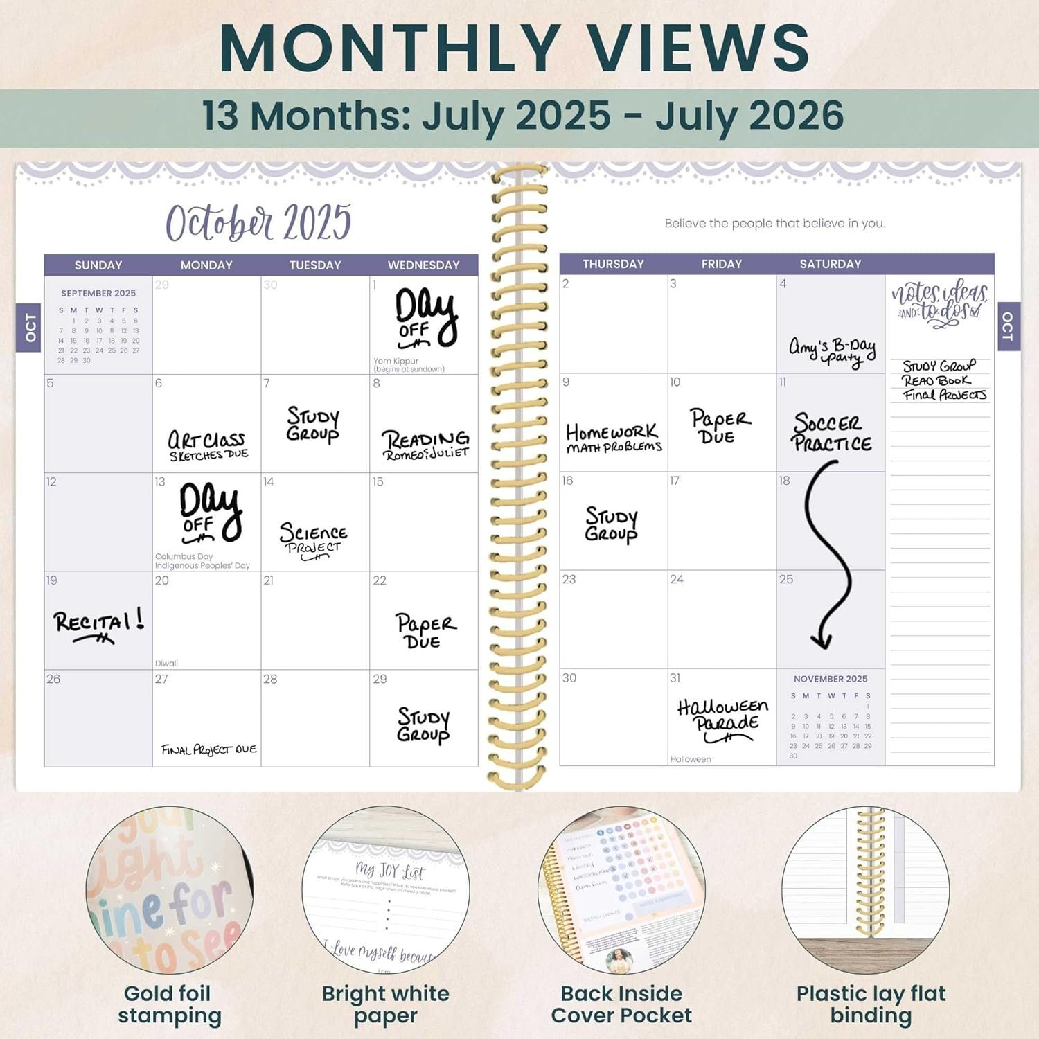 7” x 9” ACADEMIC STUDENT PLANNER: 13 months (July 2025 through July 2026) of monthly and weekly pages to help you make the most of the school year! Spacious size gives students extra handwriting space but can easily fit in a backpack or bag.