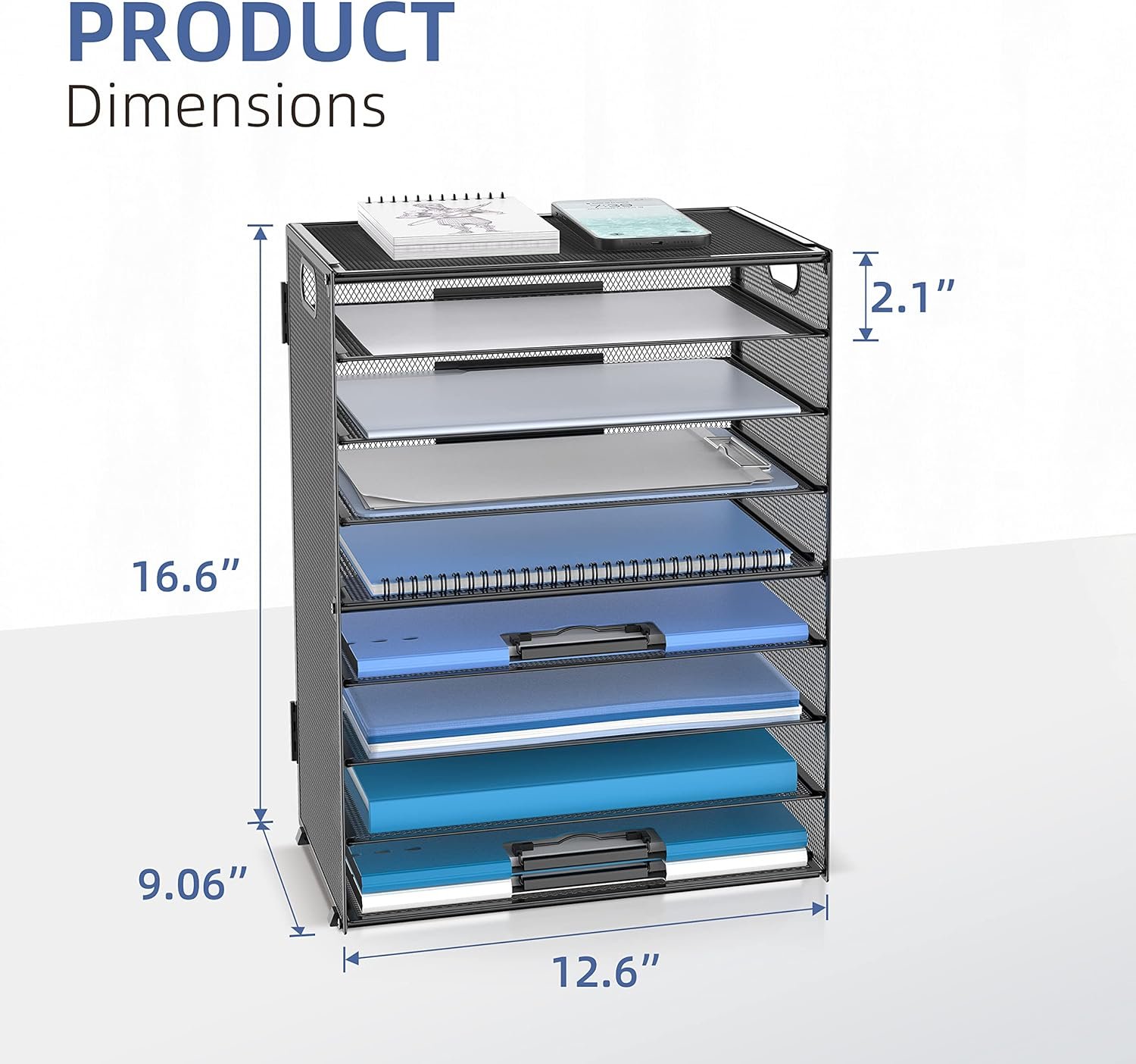 [Perfect Paper Organizer] The 9-tier paper tray desk organizer has a large capacity for all your office supplies and accessories, such as: letters, paper, printing paper, books, folders, bills, magazines and so on. Keep your desk away from clutter and increase your productivity.