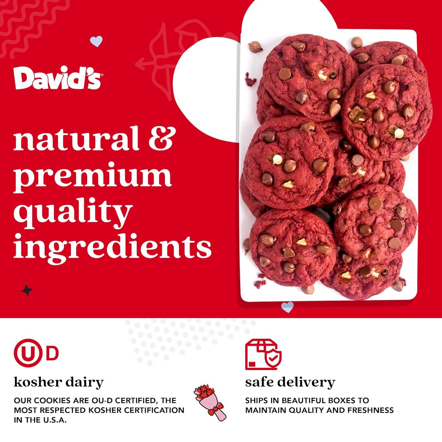 Gourmet Elegance in Every Bite: Made with premium ingredients, these red velvet cookies offer a luscious texture and rich flavor, delivering a luxurious treat that’s perfect for sharing your love on this special day.