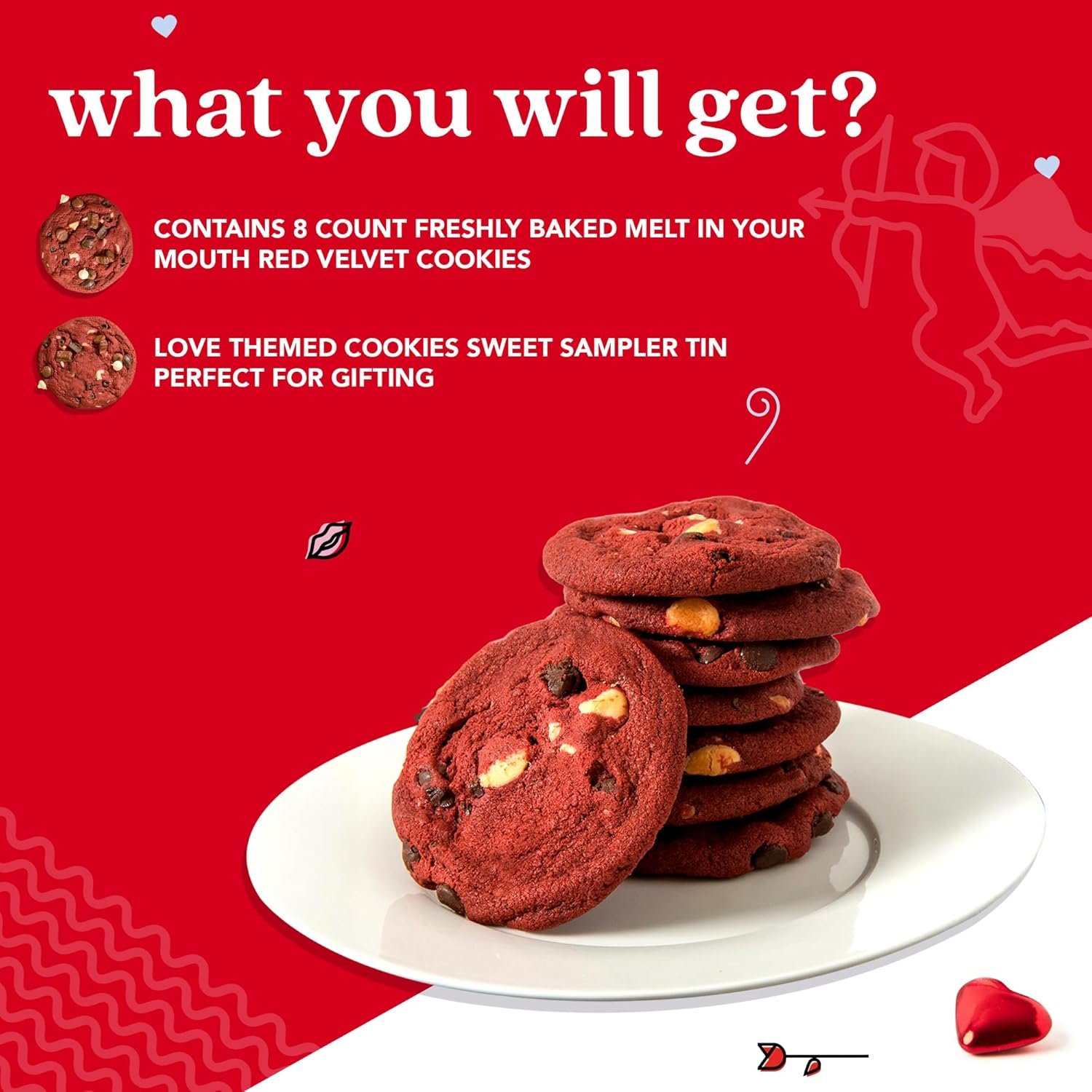 Celebrate Love with Red Velvet Bliss: Indulge in 8 freshly baked, melt-in-your-mouth red velvet cookies, specially crafted to make Valentine’s Day celebrations with her, him, or the whole family extra sweet and memorable.