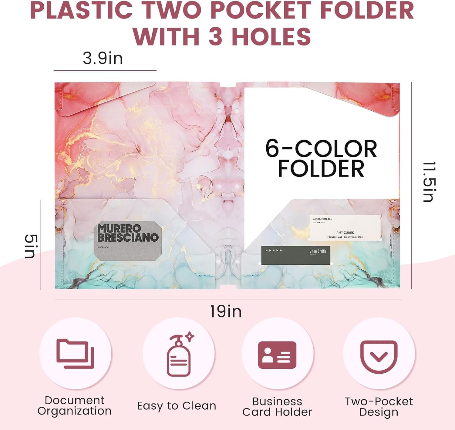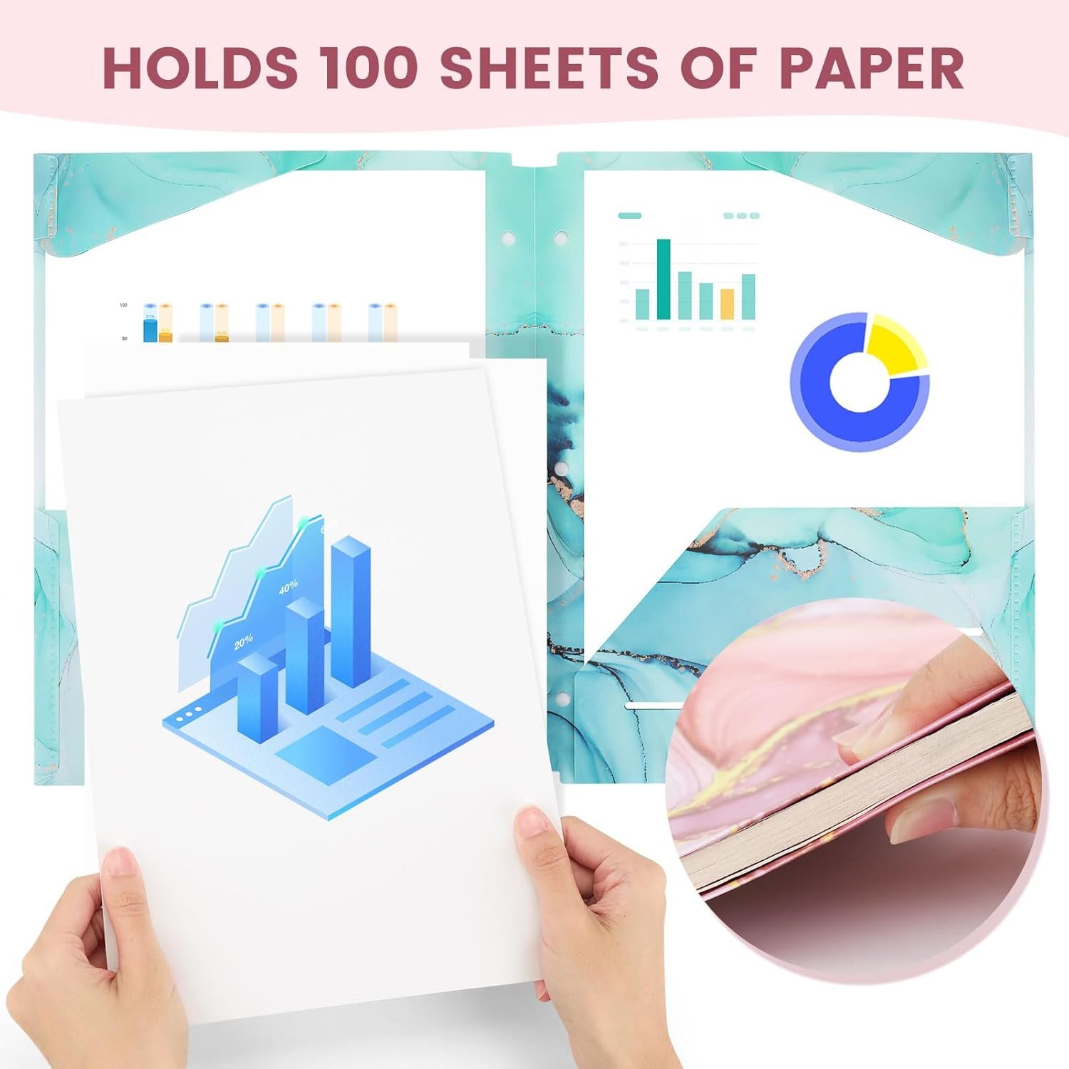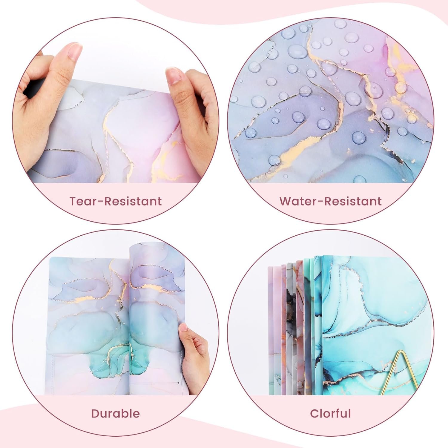 【Package Includes】You will get 6 letter-sized folders in 6 cute marble patterns. Our 3 hole folders with pockets provide you more storage space to store different documents.