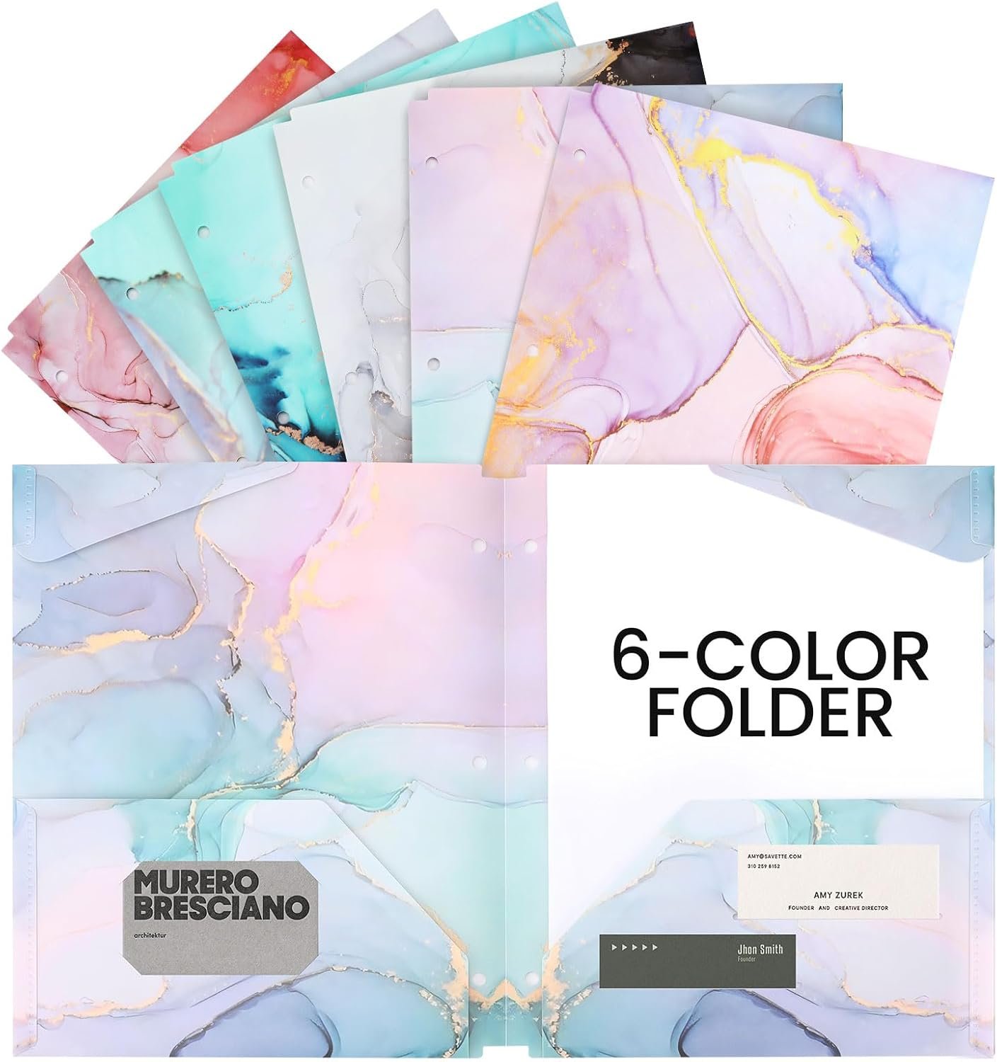 【Aesthetic Folders】This is a set of Marble Style file folders with pockets, they have six types of gilded marble designs. Suitable for all office and school staff or students. Great for managing and classifying academic paper, profile, working document, contract file, etc. They will organize your work and study surprisingly.You can give these folders as practical gifts to your family, friends, students, classmates and colleagues to express your feelings on various occasions such as birthdays, thanksgiving, Christmas, graduations, classroom activities, parties, etc