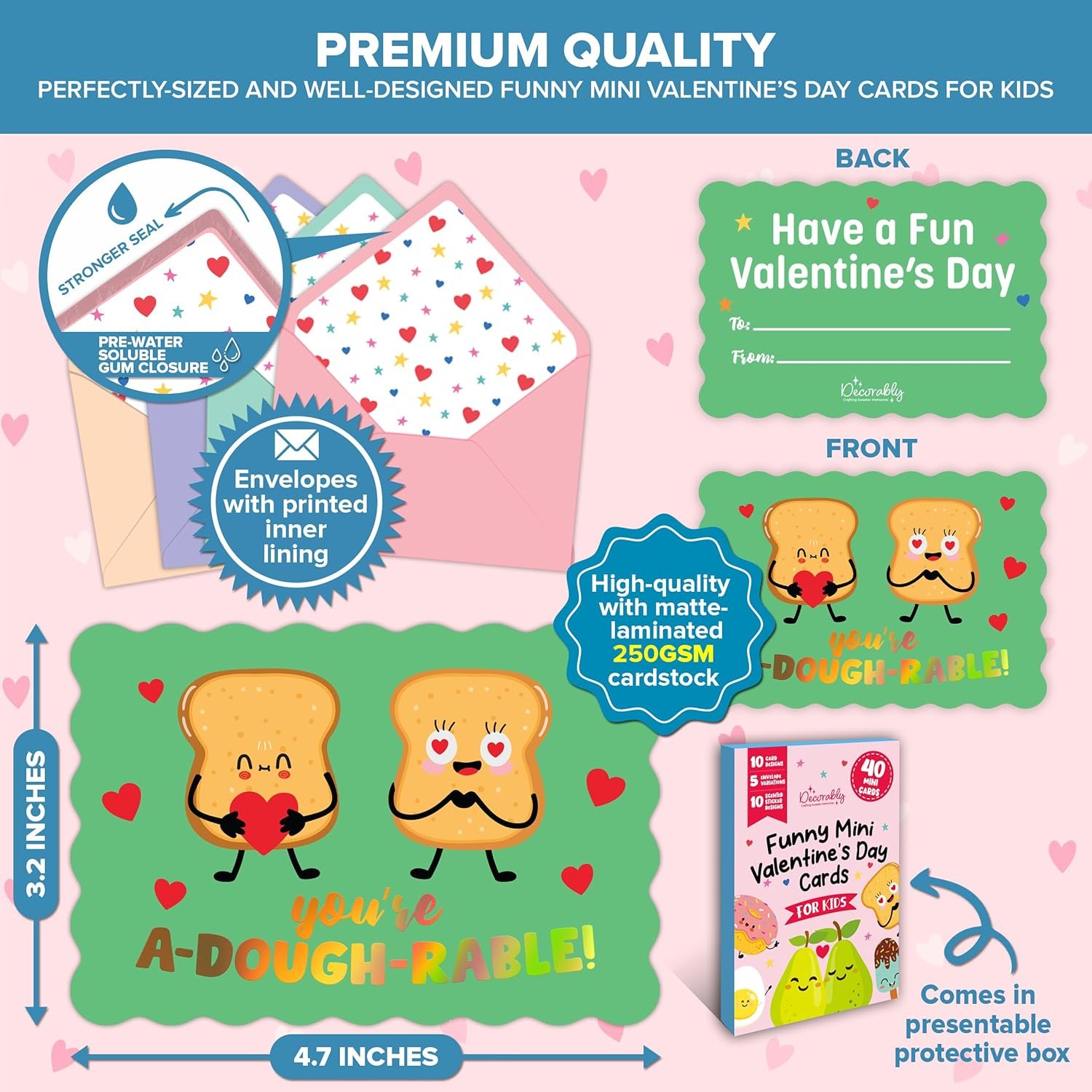 Valentine’s cards measure 4.7×3.2 inches.