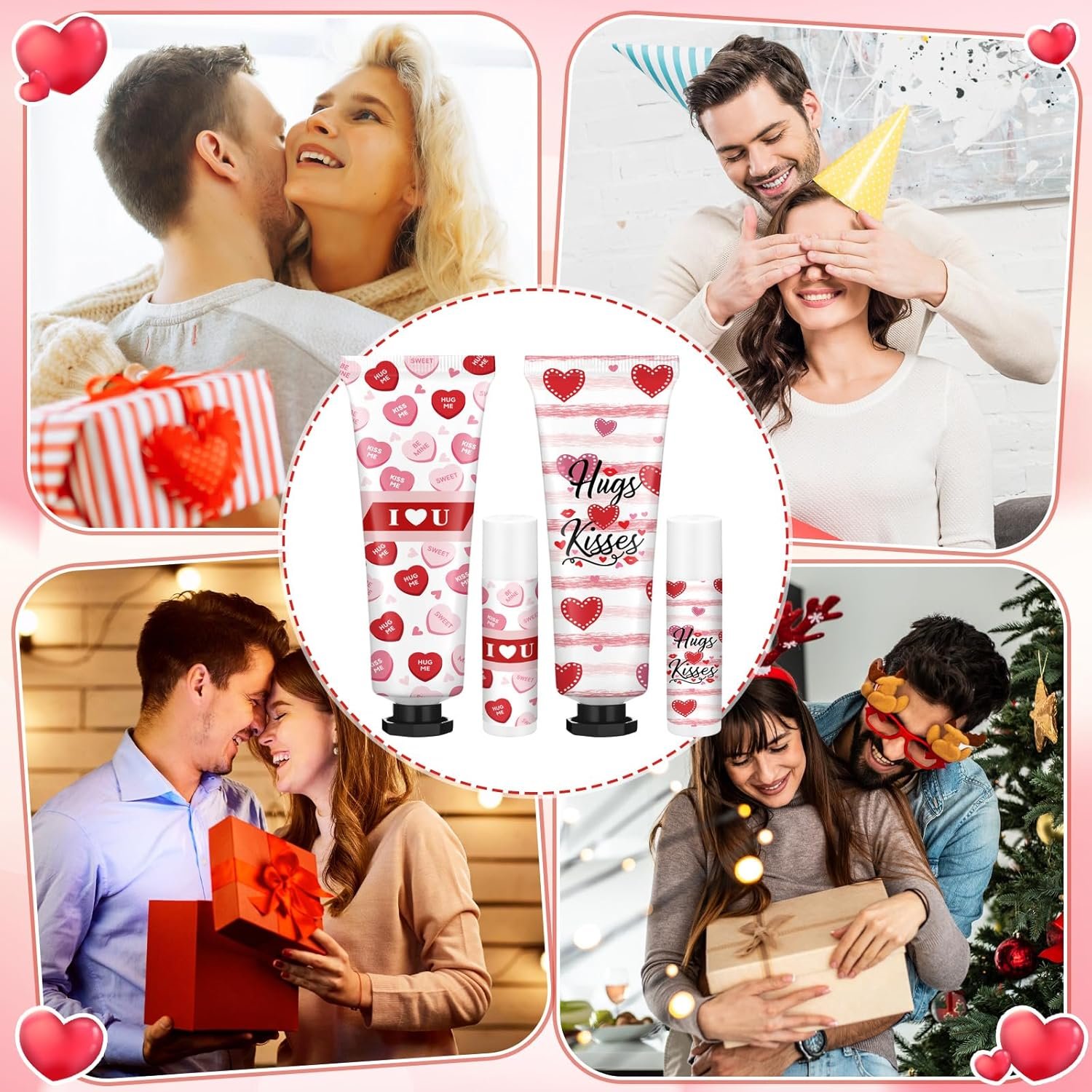 💕Romantic Valentine’s Day12 Pieces: this charming gift set features 6 beautifully designed hand cream and 6 lip balm duos, each pair curated in romantic red and pink heart patterns perfect for Valentine’s Day; With a variety of soothing and sweet fragrances, this collection offers a delightful sensory experience for your loved ones