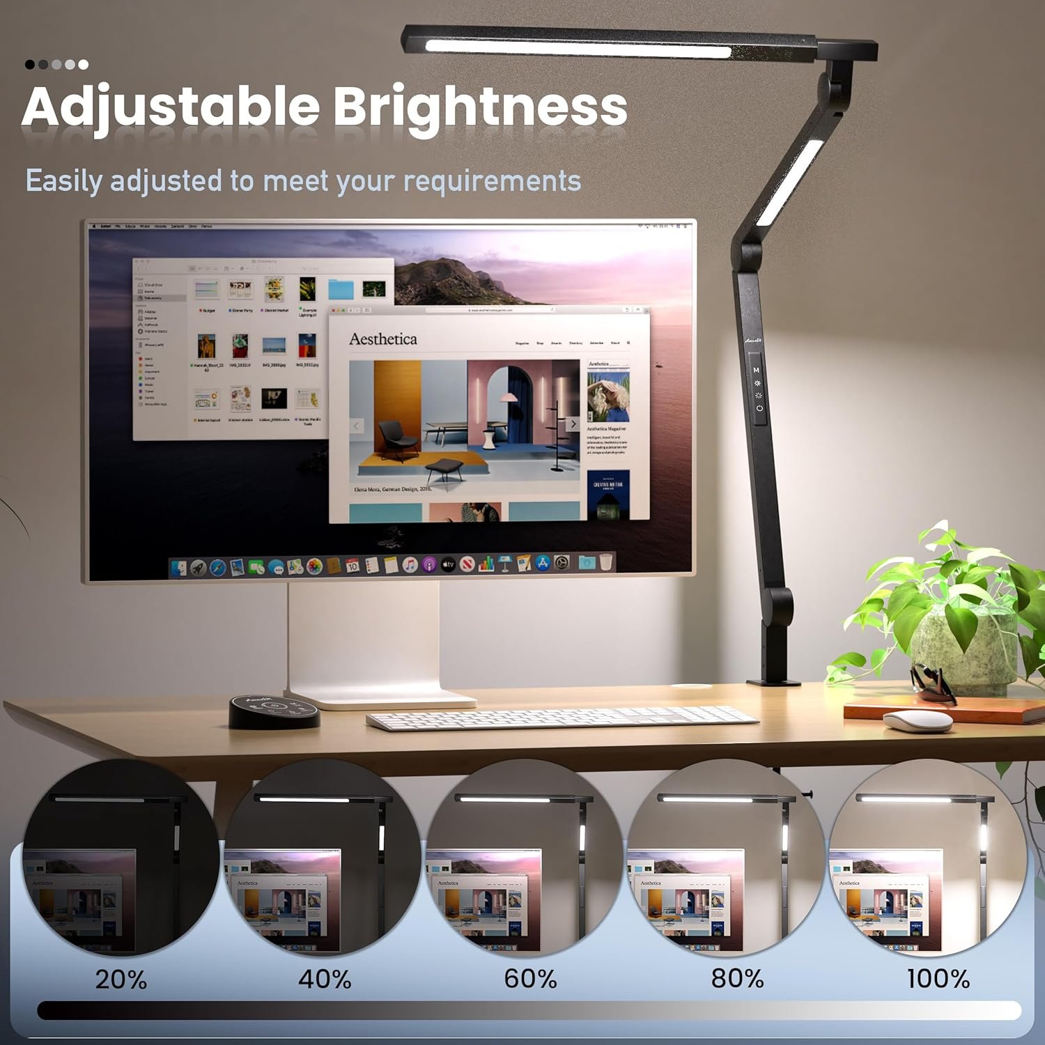 Minimalistic Design, Energy-saving LED Light Source, High Color Rendering Index, Wireless Remote Control, Enhanced Auxiliary Lighting, Larger Illumination Area, Aluminum-Magnesium Alloy Lamp Body, Sturdy and Wide Metal Clamp (Maximum desk thickness 2.7 in), making it the perfect choice for both office use and gifting.