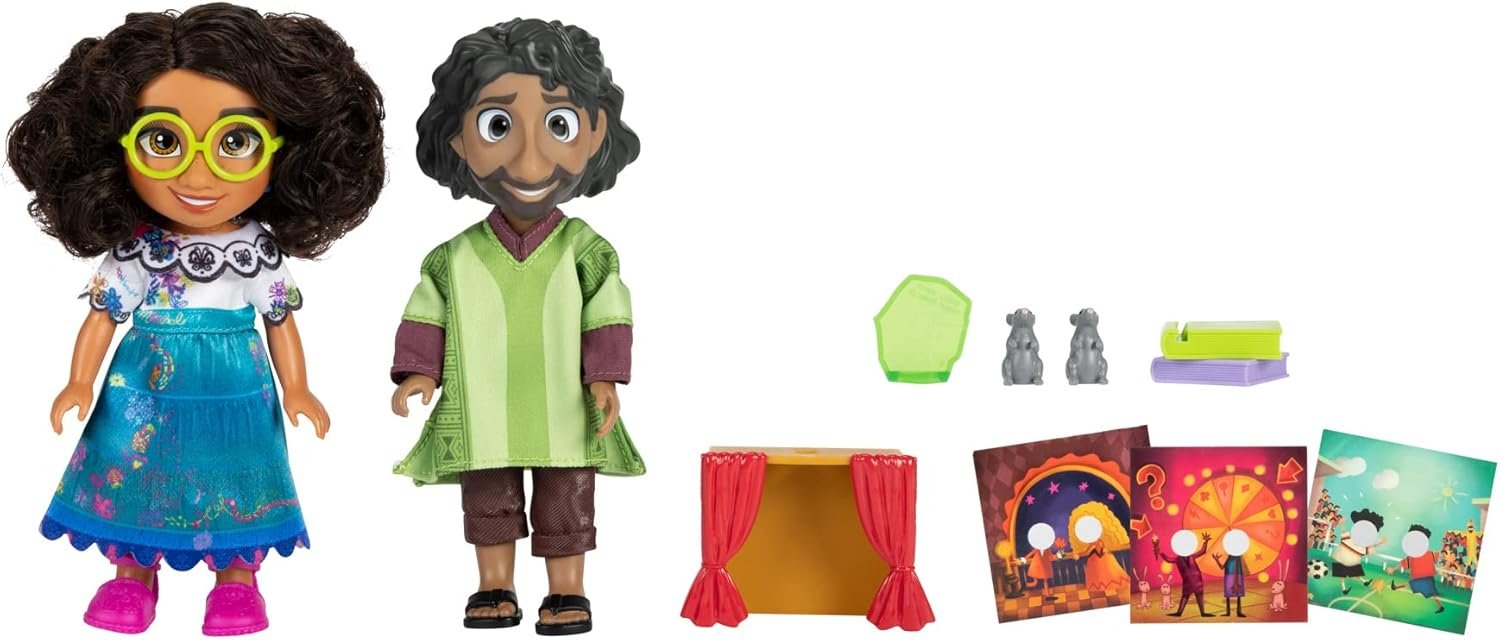 Walt Disney Animation Studios 60th feature, Encanto, tells the tale of an extraordinary family, the Madrigals, who live hidden in the mountains of Colombia, in a magical house, in a vibrant town, in a wondrous, charmed place called an Encanto. The magic of the Encanto has blessed every child in the family with a unique gift from super strength to the power to heal every child except one, Mirabel. But when she discovers that the magic surrounding the Encanto is in danger, Mirabel decides that she, the only ordinary Madrigal, might just be her exceptional family‘s last hope. Play out your favorite story moment from Disney‘s Encanto with the Mirabel & Bruno Petite Storytelling Gift Set! Join Mirabel on her adventure to save her family‘s magic and discover her mysterious Tio Bruno hiding within the walls of the casa! With this amazing set, you can recreate their hilarious movie scenes and play out your favorite story moments. Set the stage with Bruno‘s rat friends, and add in different TV backdrops, just like in the movie! Mirabel and Bruno are dressed in their signature fashions. Mirabel comes complete with her glasses, espadrille sandals, and the vision puzzle piece from the film! With the Mirabel and Bruno Petite Storytelling Gift Set, you‘ll have hours of fun playing out exciting scenes from Disney‘s Encanto!