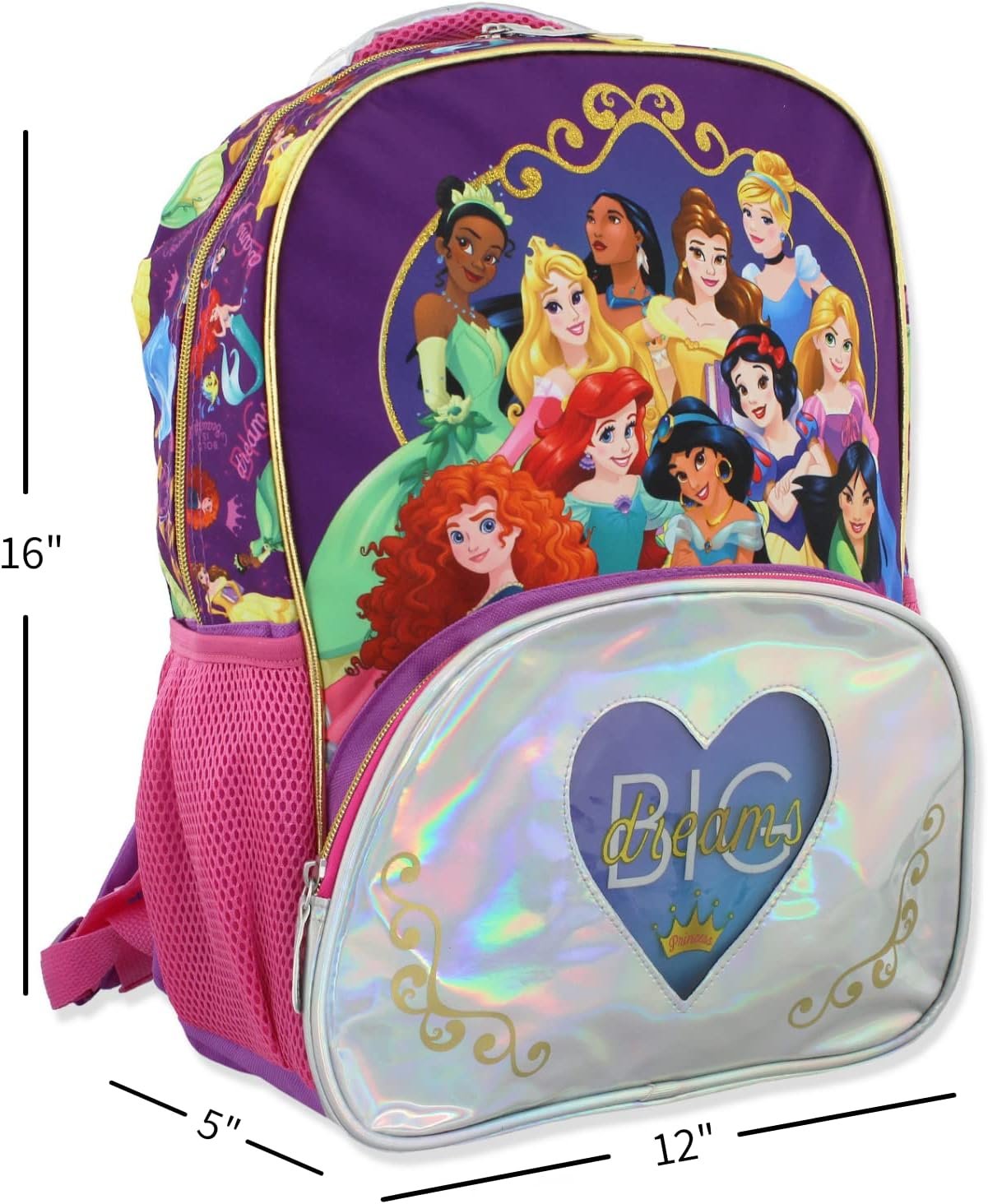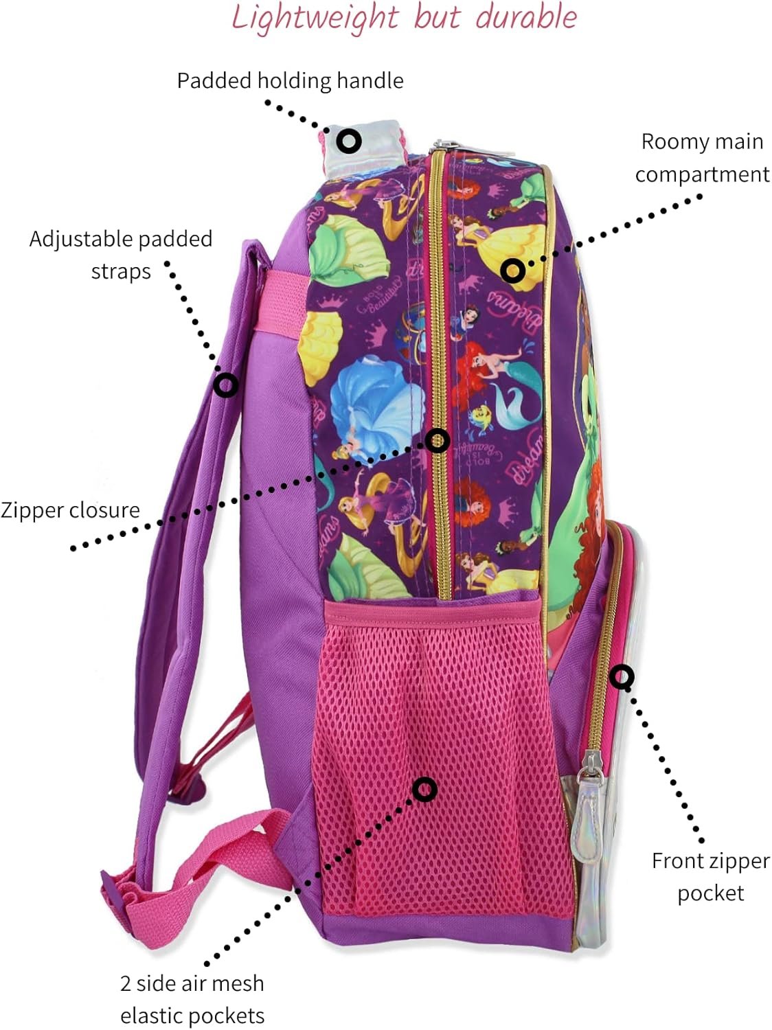 FUN AND STYLISH – This school bag features Disney her favorite Princesses like, Merida from Brave, Ariel from The Little Mermaid, Jasmine from Aladdin, Snow White, Mulan, Rapunzel from Tangled, Cinderella, Belle from Beauty and the Beast, Pocahontas, Aurora from Sleeping Beauty, and Tiana from The Princess and the Frog!