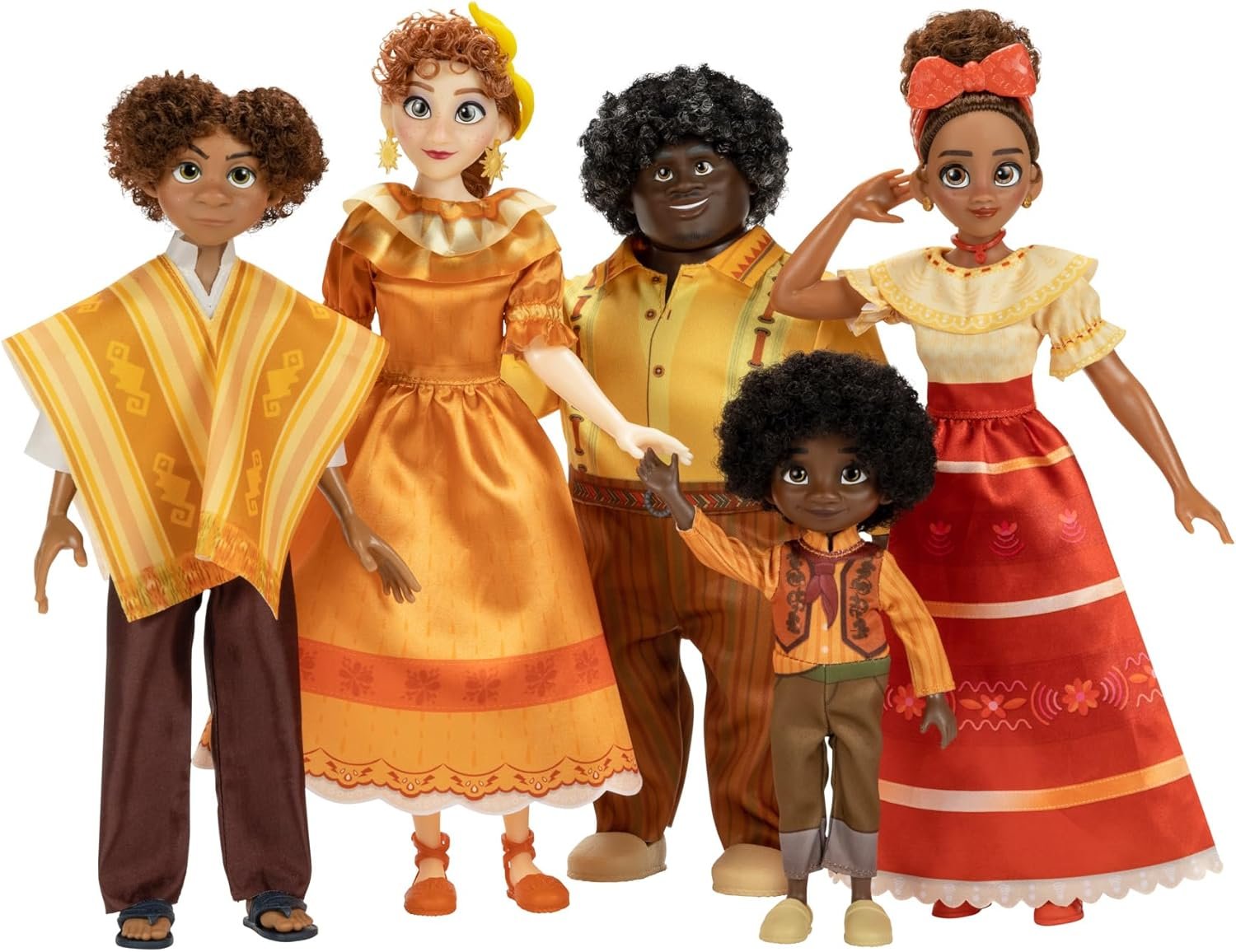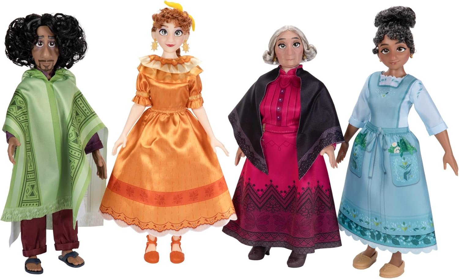 Recreate favorite movie moments and imagine your own adventures with the entire Madrigal family with the Ultimate Madrigal Family Gift Set, inspired by Disney’s Encanto. Each of the 12 Madrigal family 9” fashion dolls are dressed in their fashions and accessories just like they wear in the movie. Bring your imagination and discover the power of family with Julieta, Agustin, Mirabel, Isabela, Luisa, Pepa, Felix, Antonio, Camilo, Dolores, Abuela, and Bruno.