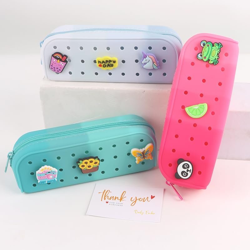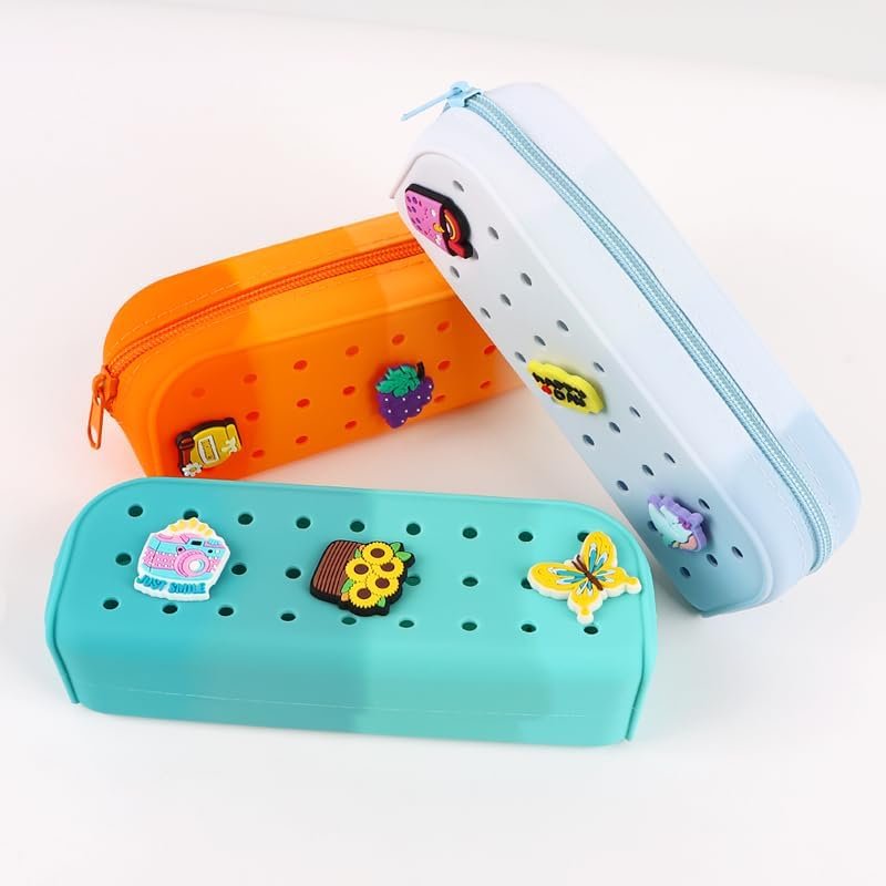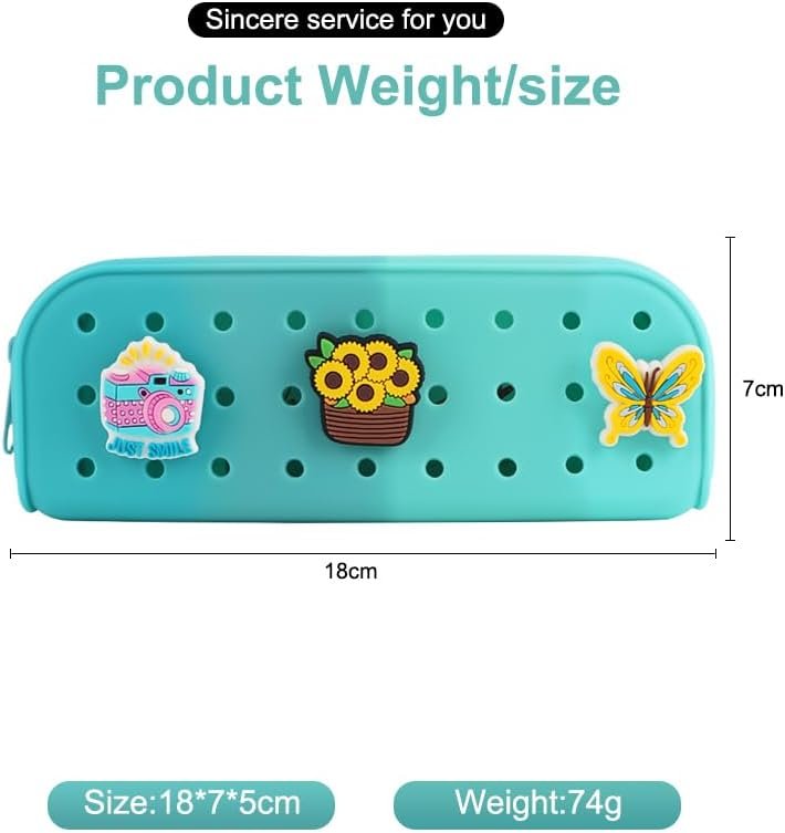 Transform your everyday organization with this customizable silicone pencil pouch. The innovative design features built-in holes that let you personalize your case with decorative charms (not included) to express your unique style. Measuring 7.1 x 2 x 1.97 inches and weighing just 2.6 ounces, this slim yet spacious carrier easily fits in backpacks, drawers, or on your desk. The durable silicone construction is waterproof and simple to clean – just wipe with a damp cloth. A smooth zipper closure keeps your items secure, whether you’re storing pens, pencils, markers, USB drives, or other small accessories. Perfect for students, professionals, or anyone seeking a fun way to stay organized, this versatile pouch comes in vibrant colors to suit any preference. Ideal for ages 13 and up, it’s a practical solution for school supplies, office essentials, or travel organization. The lightweight, flexible design makes it comfortable to carry while protecting your items throughout the day.