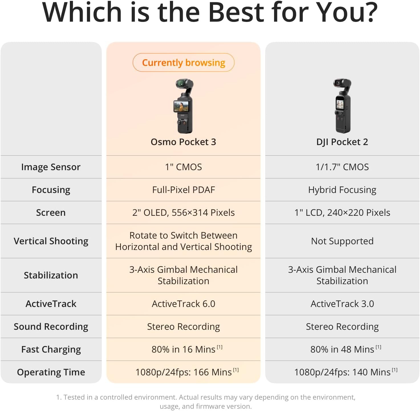 With a 2-inch full-color OLED touchscreen, Pocket 3 puts vibrant visuals and effortless control right at your fingertips. Rotate to start shooting or simply tap to access parameter adjustments and other functions.