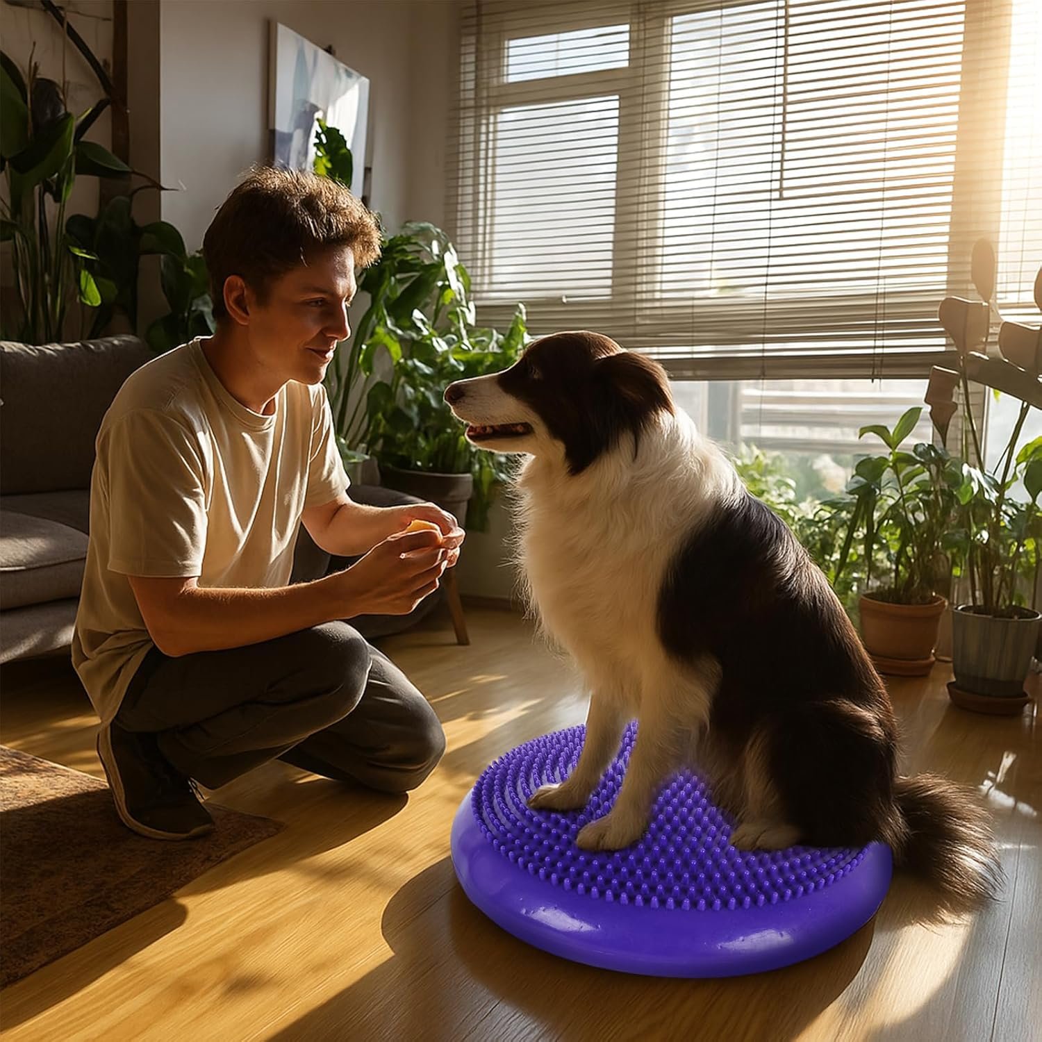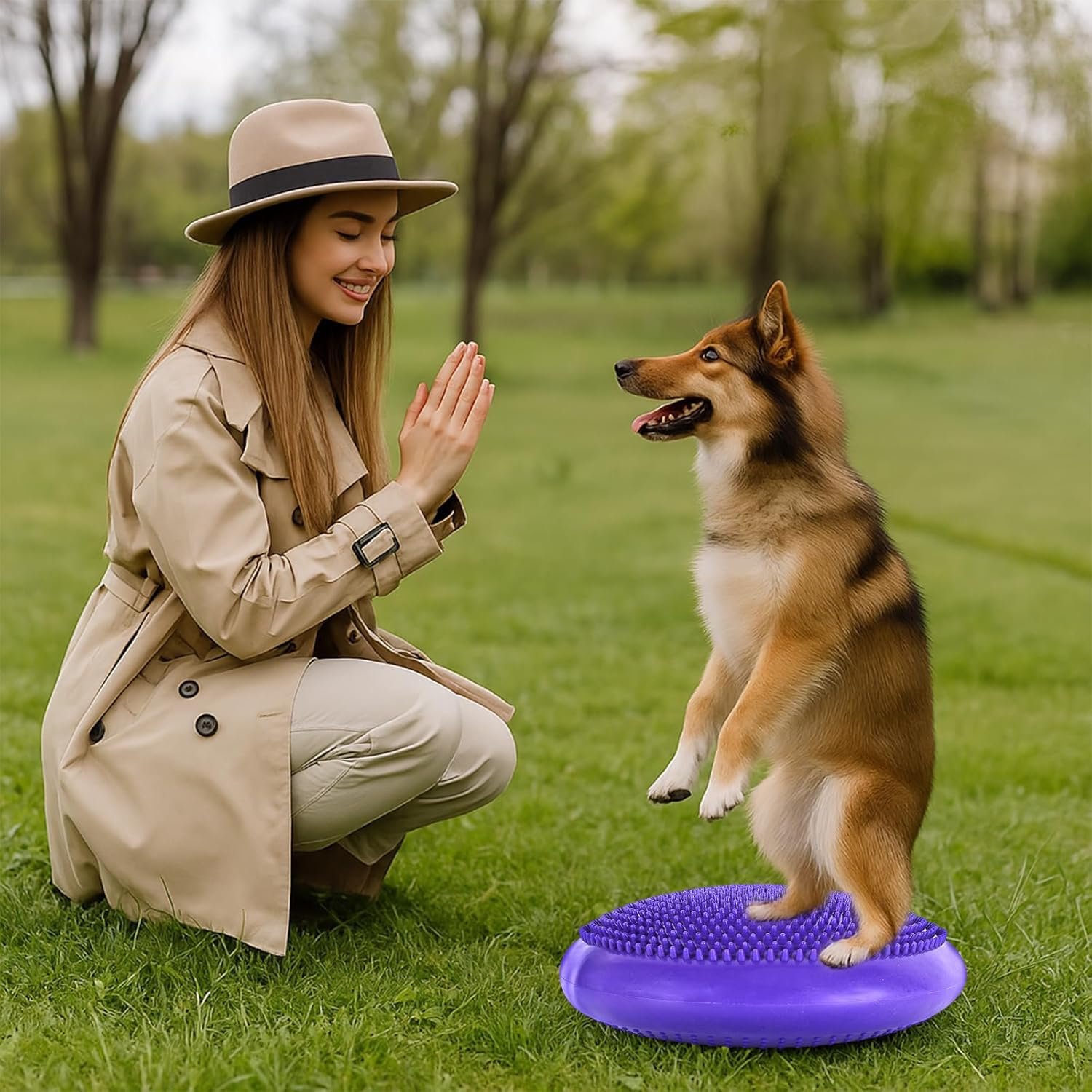 【Professional-grade canine rehabilitation and all-around training tool】This high-strength PVC balance disc, designed specifically for dogs, not only supports post-operative rehabilitation, muscle building, and joint mobility improvement, but also boasts a unique dual-textured, non-slip surface and adjustable inflation system, allowing it to be used for everything from beginner balance exercises to high-intensity agility training, helping your dog improve core strength, coordination, and neurological acuity.