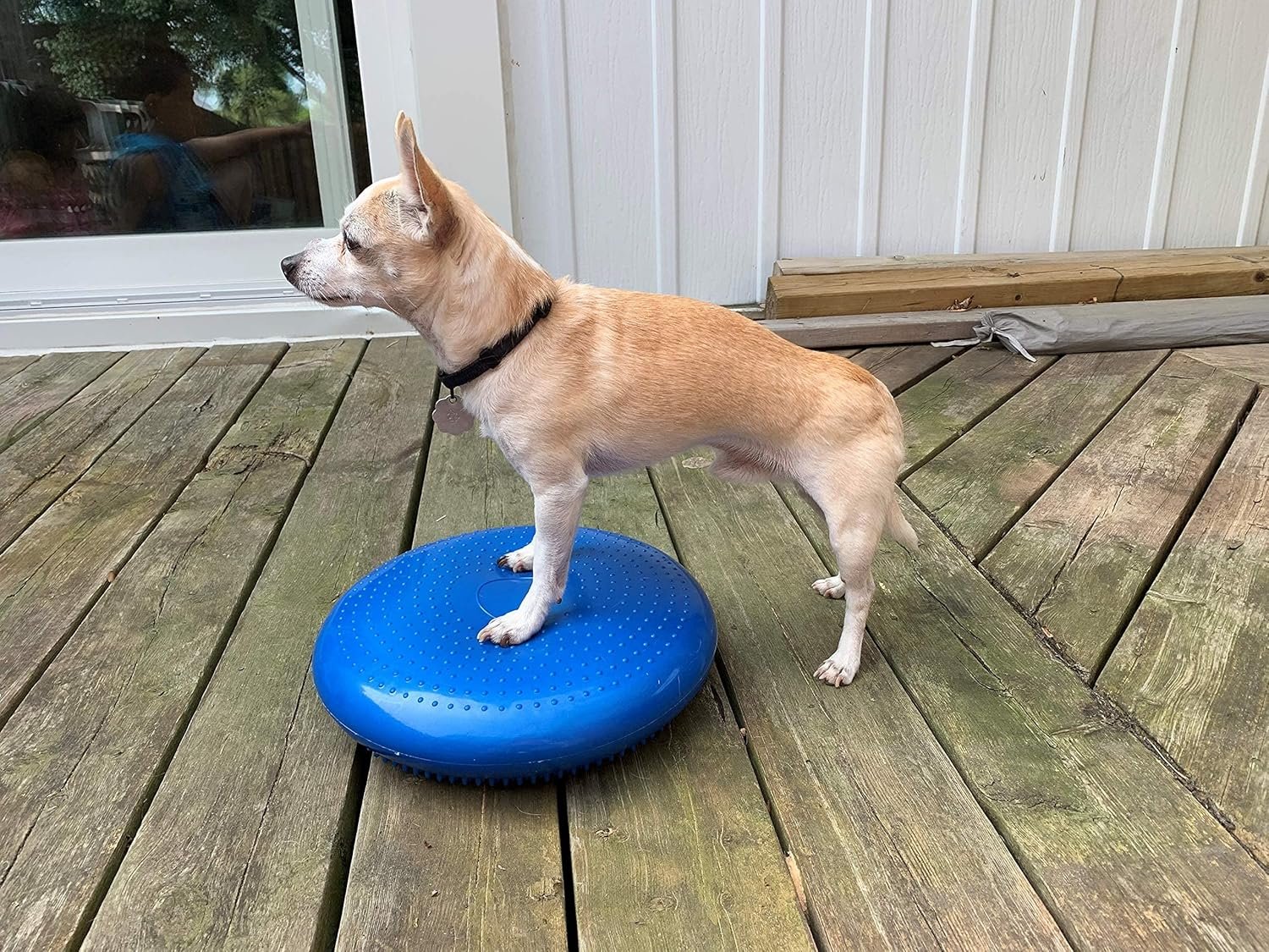 Includes hand pump and 2 exercises to get you started on dog rehab – DEZAL Balance discs are made with highly durable material that can handle gentle physical therapy to intense agility training. Anti-burst and portable so you can exercise anywhere. Included Hand Pump allows you to easily inflate and deflate the balance disc to your desired firmness. Get started with 2 included exercise. Dimensions: 14” diameter, 3” height; Weight: 2.2 lbs; Made of PVC – Phalate free for your peace of mind.