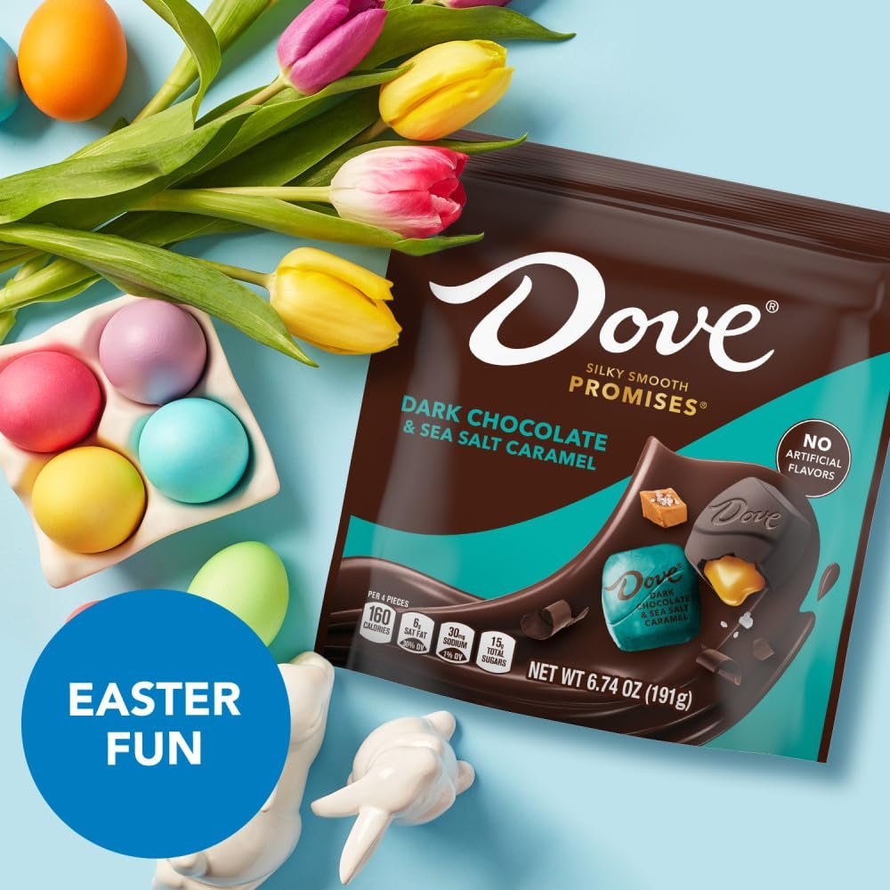 Contains one 6.74-ounce bag of DOVE PROMISES Sea Salt Caramel and Dark Chocolate Candy Easter Assortment