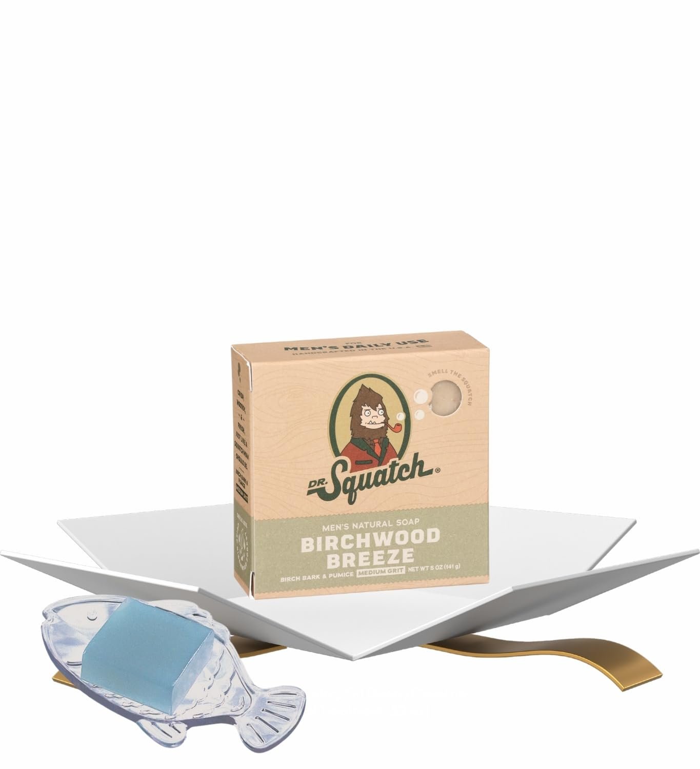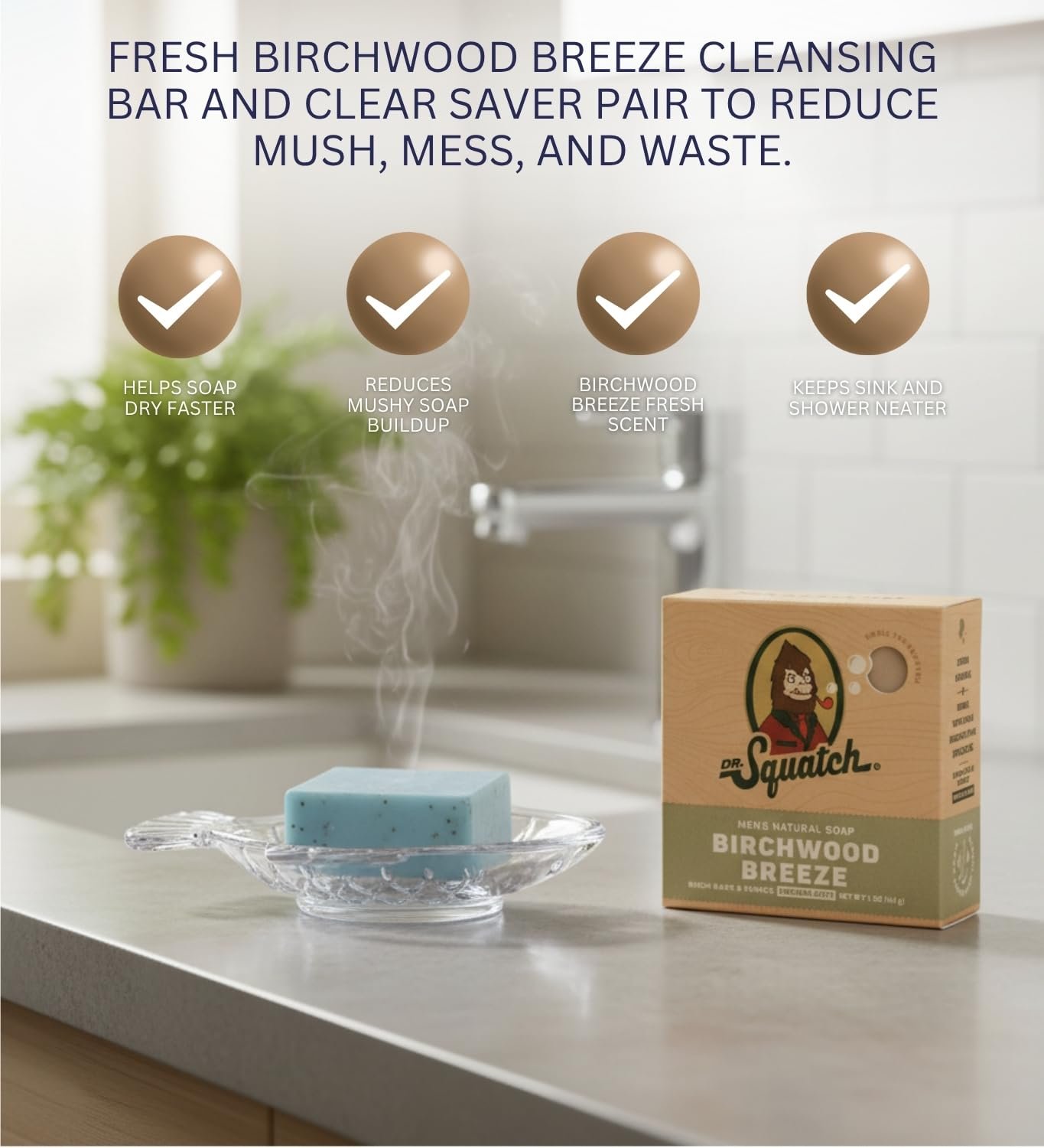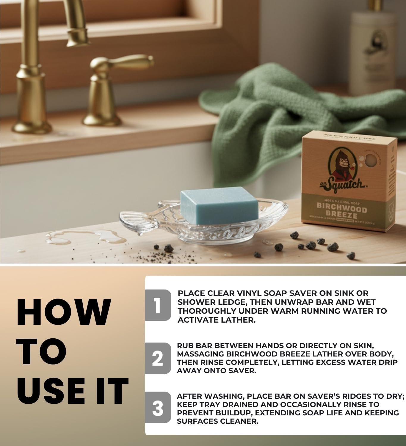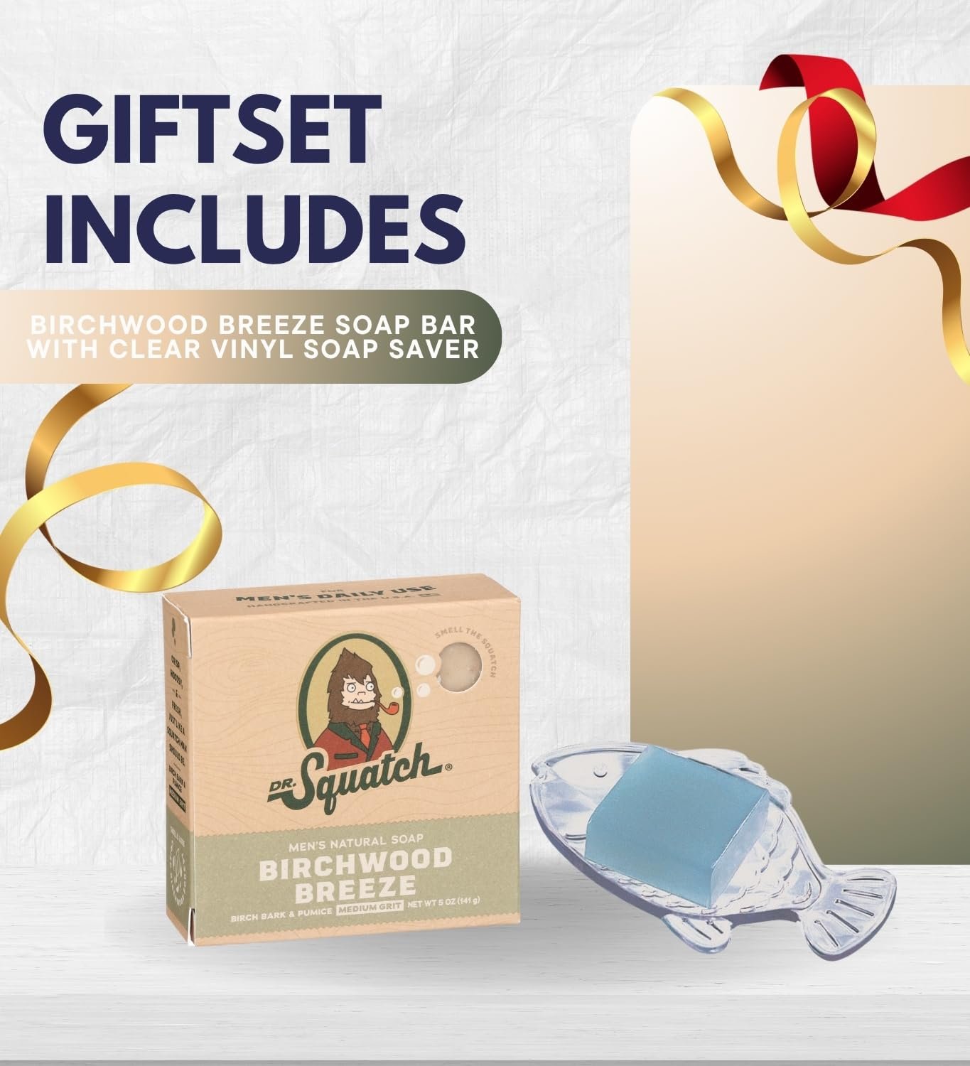 𝐁𝐀𝐓𝐇 𝐂𝐀𝐑𝐄 𝐒𝐄𝐓 – This gift set includes 1x Dr. Squatch Birchwood Breeze Scent Soap Bar 5 Oz 1 Pc with 1x Clear Vinyl Bar Soap Saver for dr squatch soap use, supporting cleansing and gentle exfoliation (Packaging May Vary).