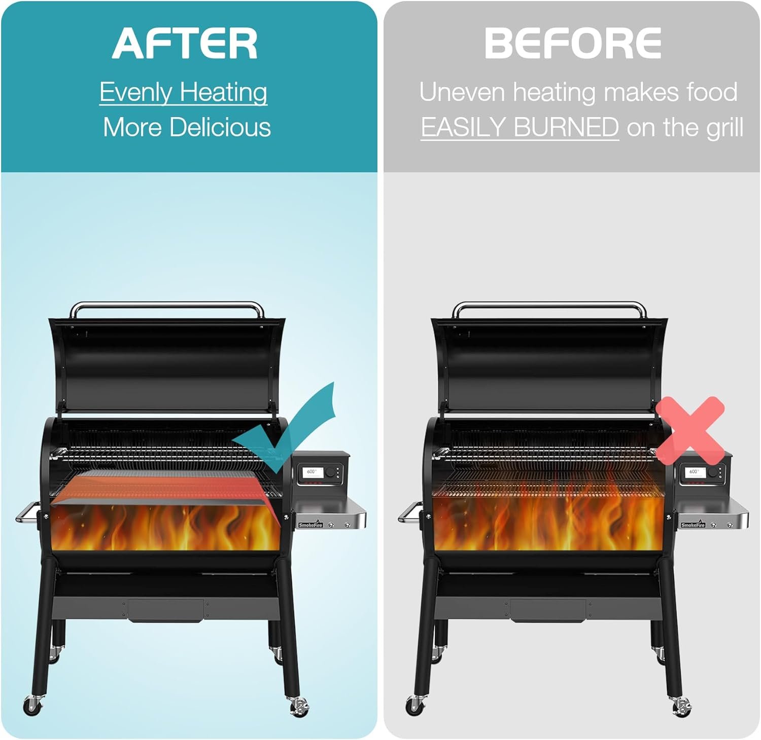 Solid stainless steel drip pan heat diffuser for Traeger pro 22 seriese won’t warpage easily. Evenly heating distribution makes the heat plates a must-have grill accessory for Traeger grease tray replacement parts.