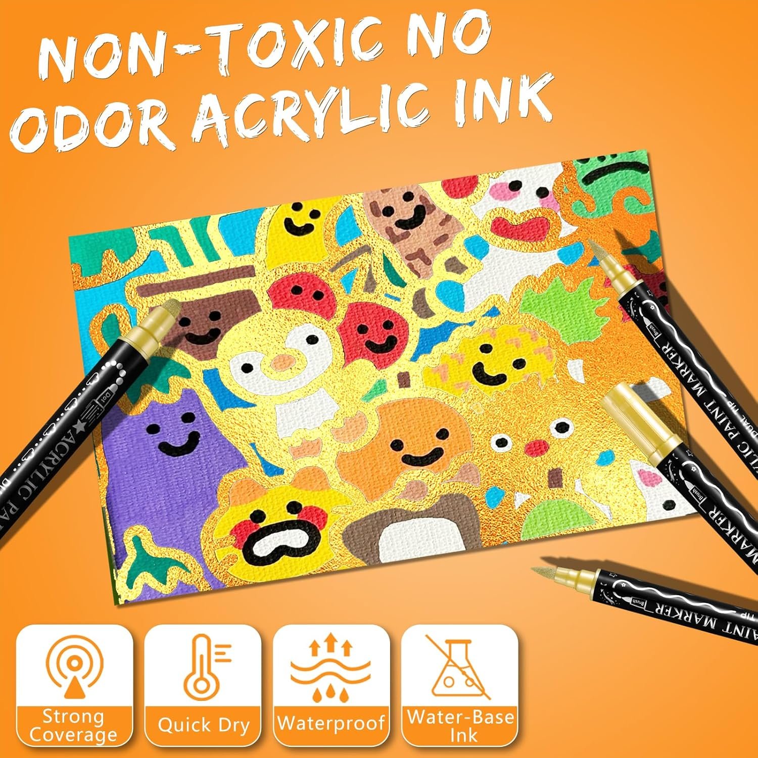 Differentiated Upgrade: Our art supplies acrylic markers have been upgraded from the traditional ones. They use high-quality ink with rich colors, quick drying, strong coverage, long-lasting colorfastness, smooth flow without leakage. Unlike ordinary push-type acrylic pens, our craft supplies acrylic paint pens do not require shaking or pressing down. Simply open the cap and start creating. The unique cotton nib design ensures quick ink absorption and even release, making coloring smoother and greatly reducing waiting time for drying. (To maintain the optimal condition of the nib, tighten the cap after use and store the pen horizontally to prevent the tip from drying out)