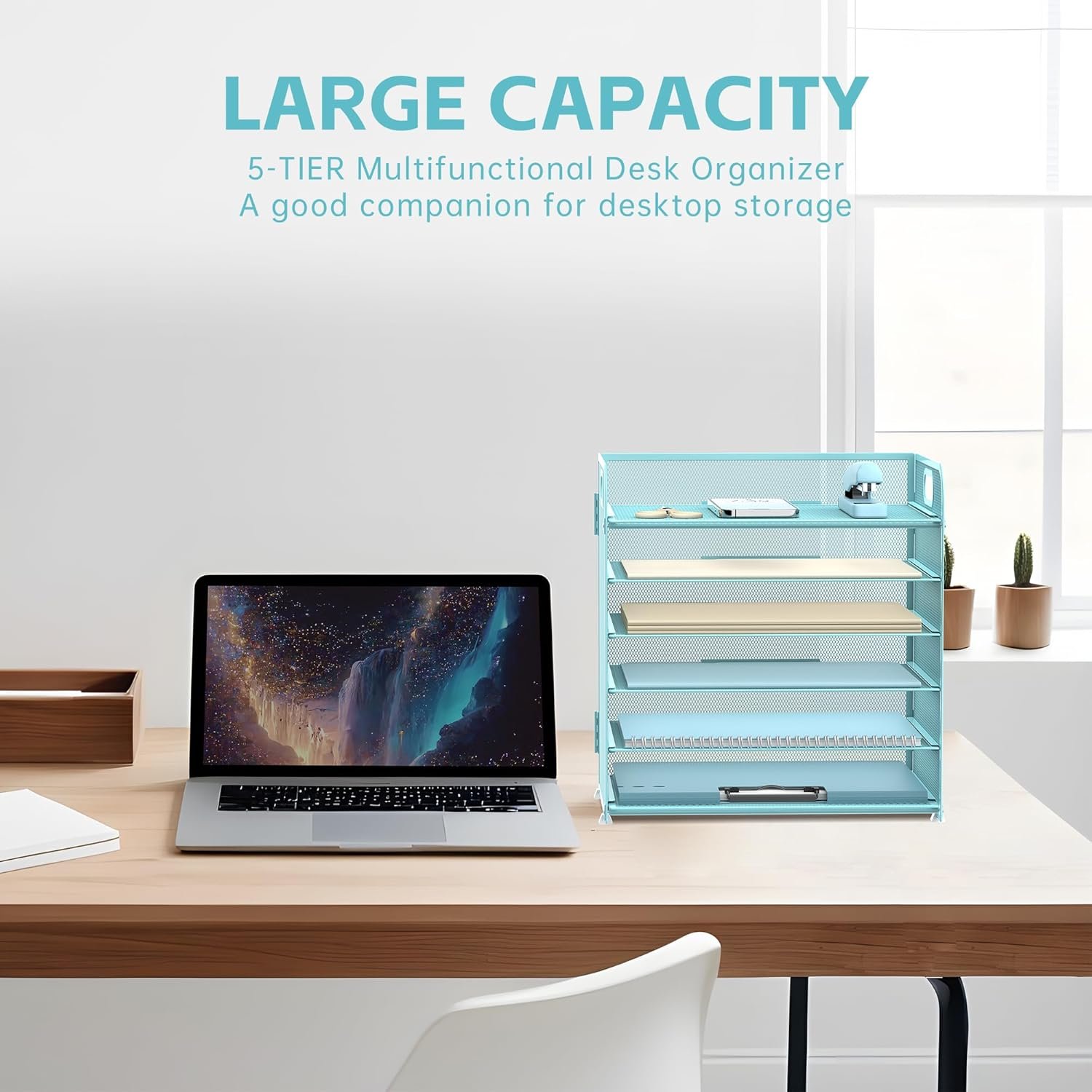 [CAPACITY STRUCTURE] The upgraded version of the DRQ desktop organizer is designed with two handles and contains 6 removable trays. [OPTIMAL SIZE] Perfectly sized at 12.79*9.25*13.2 inches which is perfect for holding letters, A4 paper, books, bills, magazines, mails, folders, notebooks and so on.[MULTIFUNCTION DESK ORGANIZER] The file organizer can store paper, files, or folders. Each tier can be designated for a specific category, which makes it more convenient to locate and access your files.