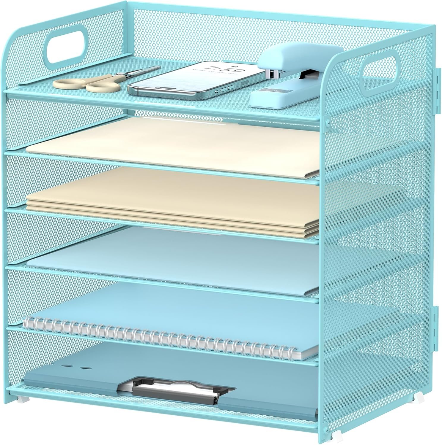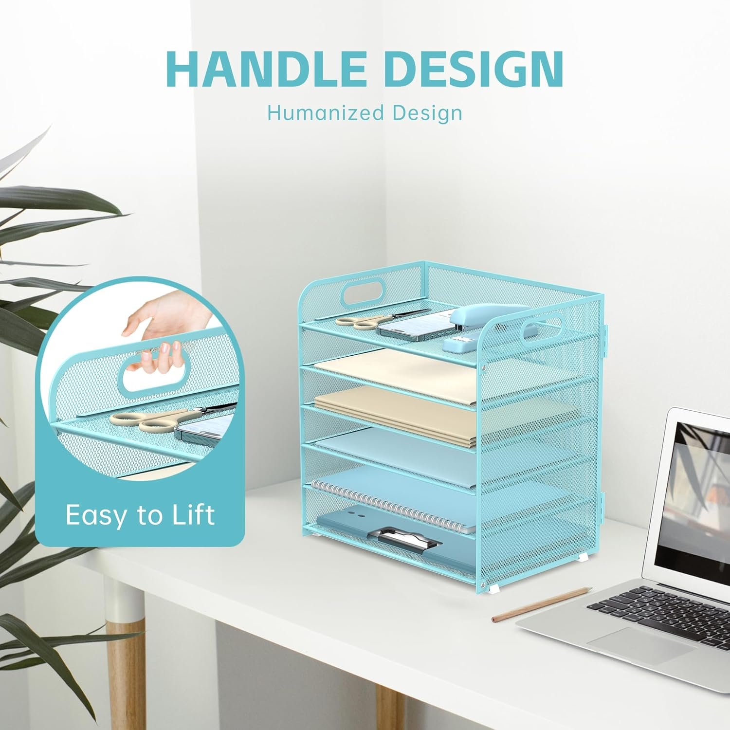 Our paper organizer is designed with a handle, and compared with other organizers without a handle, our organizer is more convenient to move. Portable design allows users to easily lift up this desk file organizer for desk.