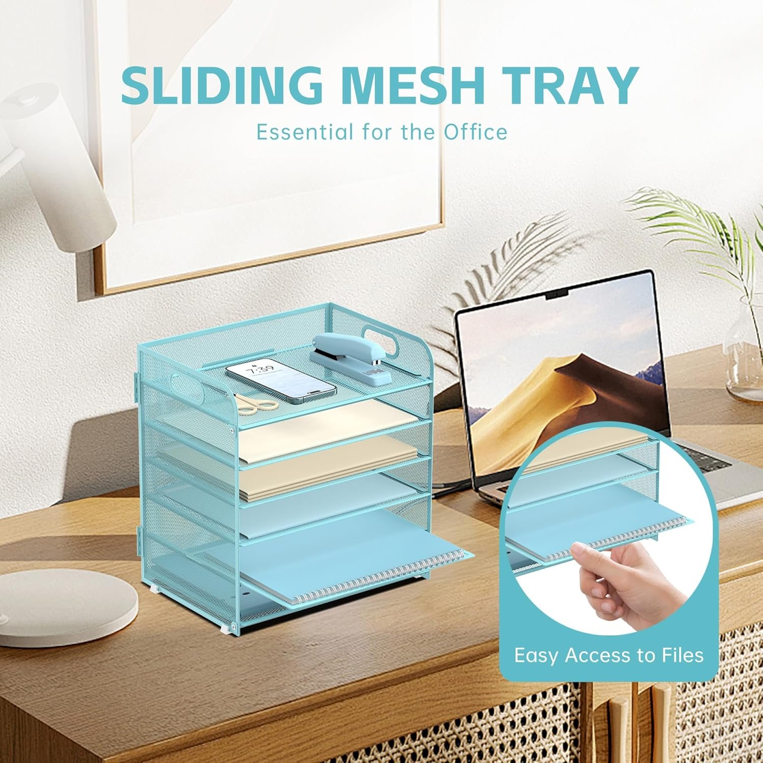 The adjustable tray is designed to help you access your files better, solved the problem of getting to books or folders. It will also improve your office efficiency and make your work go more pleasant.