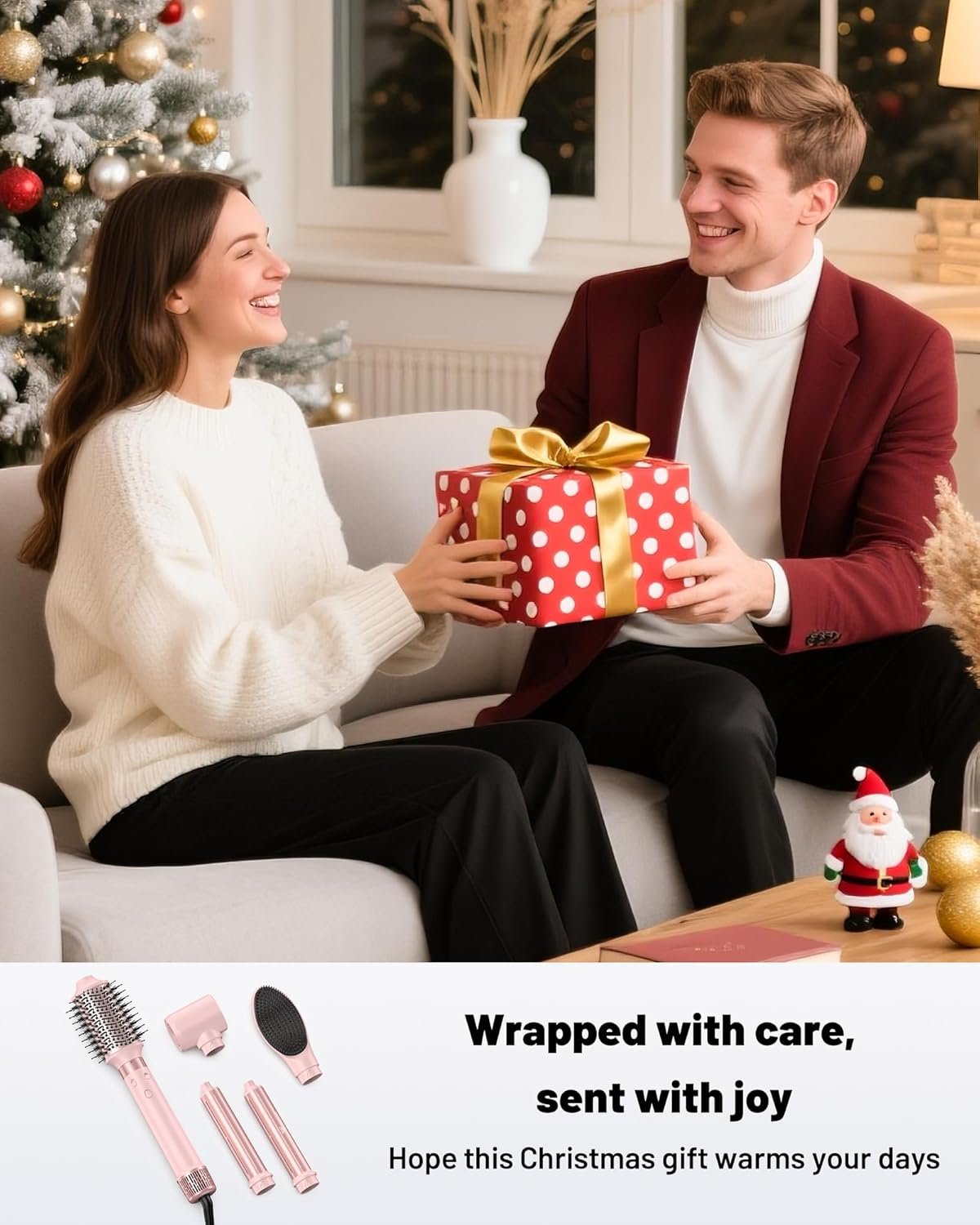 Wrapped with Care, Sent withJoy—A Christmas Gift that Blends Practicality and Elegance: the MESCOMB 5-in-1 Dual Voltage Hair Dryer Brush. Tailored for international travelers, it boasts universal 100V-240V dual voltage, compatible with over 150 countries (U.S., Europe, Asia, etc.)—no voltage converter required, just instant use. This professional hot air styler delivers salon-quality hairstyles worldwide, with intuitive operation: “-” for power and hot air temperature adjustment, “*” for cold air. A timeless gift for the discerning globetrotter.