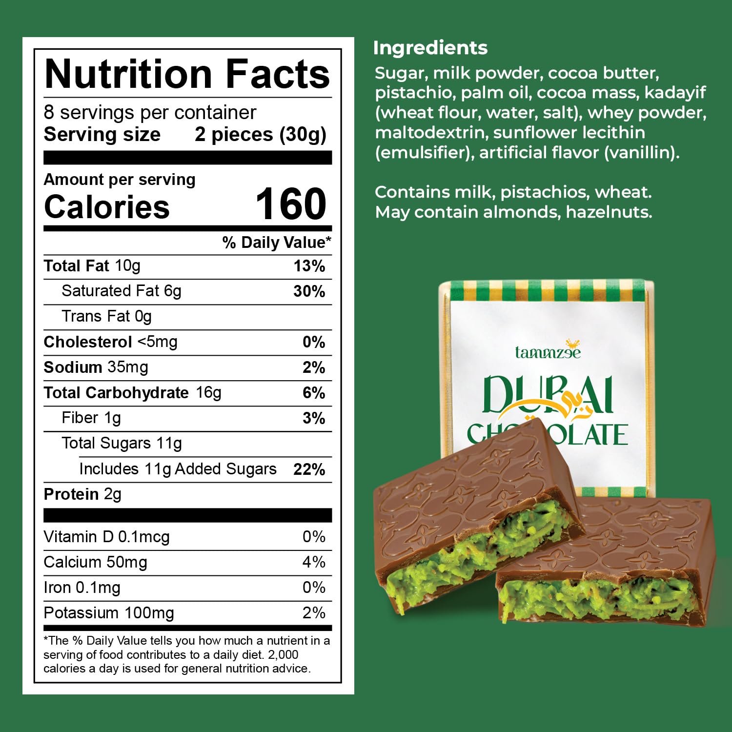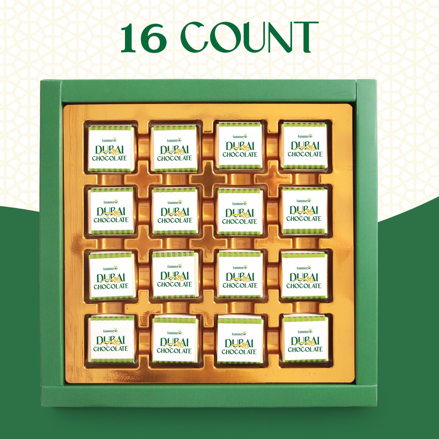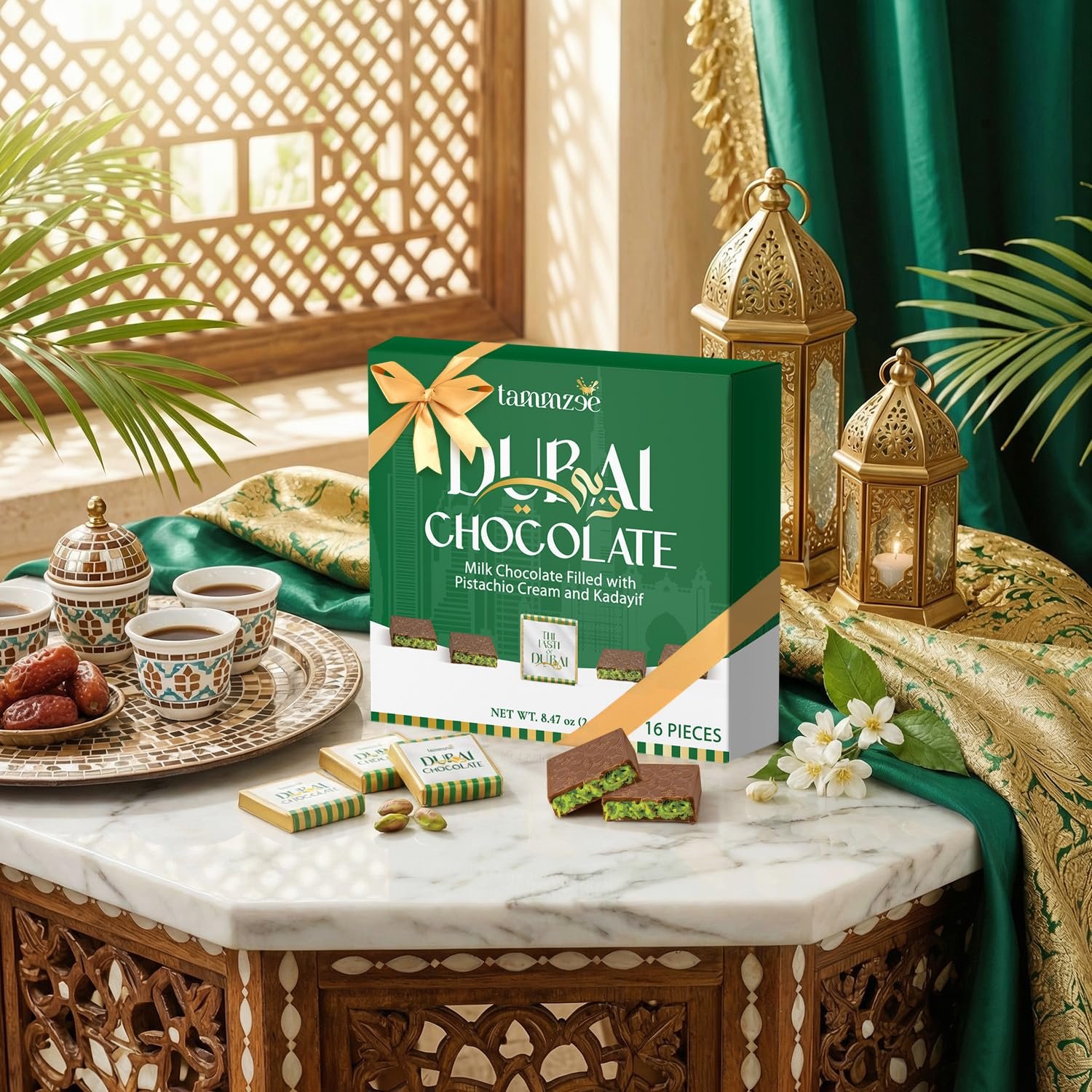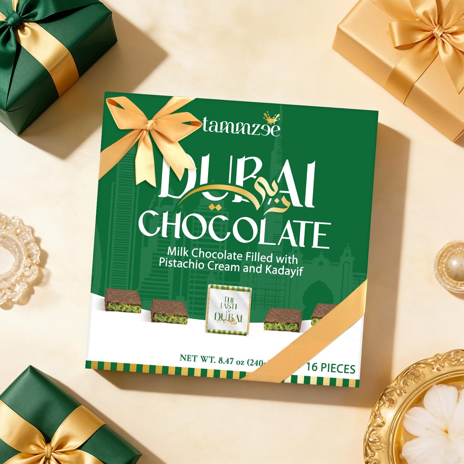 Bring home a 16 count pack of Tammze Dubai Chocolate, individually wrapped for freshness and delight in a luxurious chocolate experience perfect for any occasion. This premium collection of pistachio and fancy chocolates is ideal for Easter, Valentine’s Day, birthdays, anniversaries, special celebrations or sharing with friends, family and colleagues.