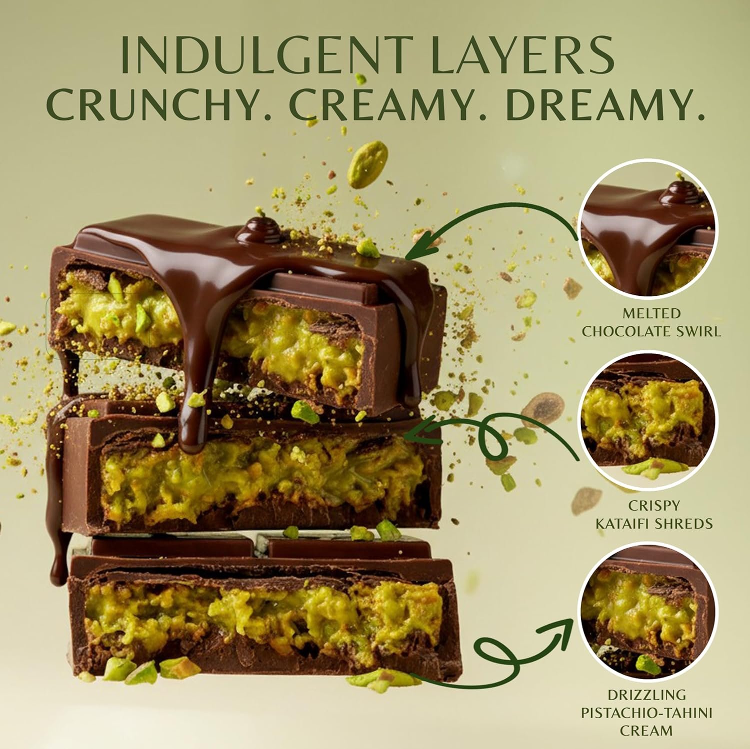 PREMIUM SIGNATURE FLAVORS – Indulge in rich flavors with pistachio cream, tahini, milk chocolate wafers, and crispy kataifi. Each ingredient delivers a decadent taste and texture that elevates your homemade Dubai chocolate bar.