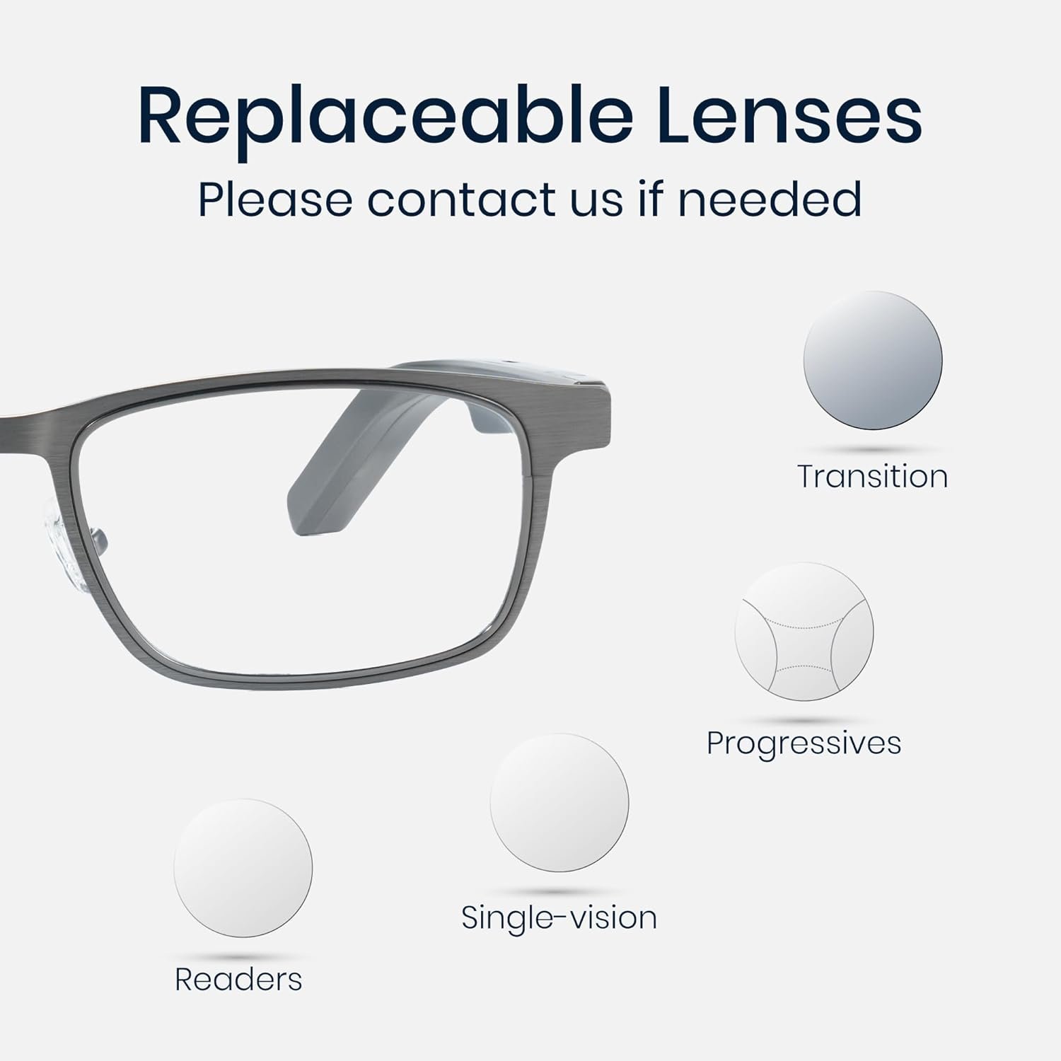 TITANIUM FRAME: Extremely Lightweight AI glasses. Total frame weight is just 1.23 oz. With 9mm ultra-thin temples (47% slimmer than conventional smart glasses), this precision design redefines the standard for all-day wearable tech glasses. Our aim is to build a sophisticated instrument that complements your style, not a fragile tech toy.