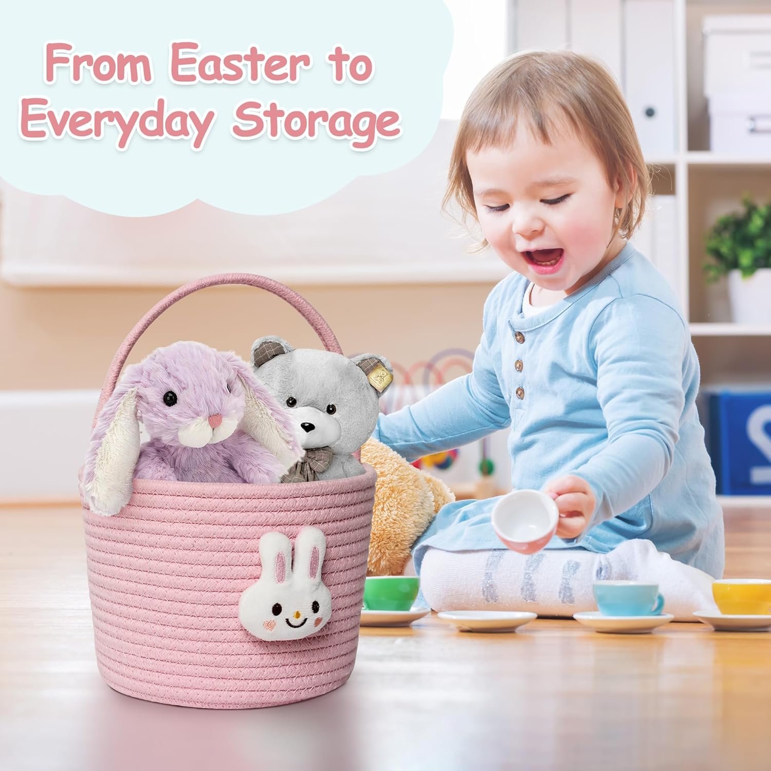 Reusable and Multi-Purpose Basket: Not just for Easter. This Easter egg bucket works perfectly as a gift basket, nursery storage, toy organizer, or decorative basket for your home. Ideal for keeping books, keys, cosmetics, dog toys, and other small items neatly organized.