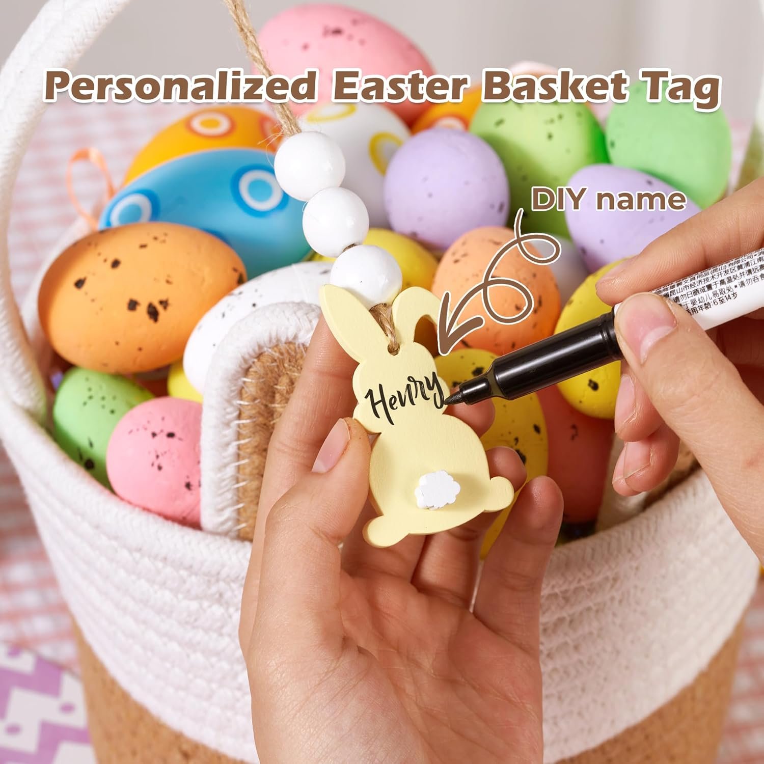 PERSONALIZED EASTER BASKET NAME TAGS: Each empty baby girl boy Easter baskets offer playful personalized bunny designs. The bunny name tag allows writing the child’s name, making each child feel special and valued with their unique Easter basket. This small detail will make kids feel special and appreciated.