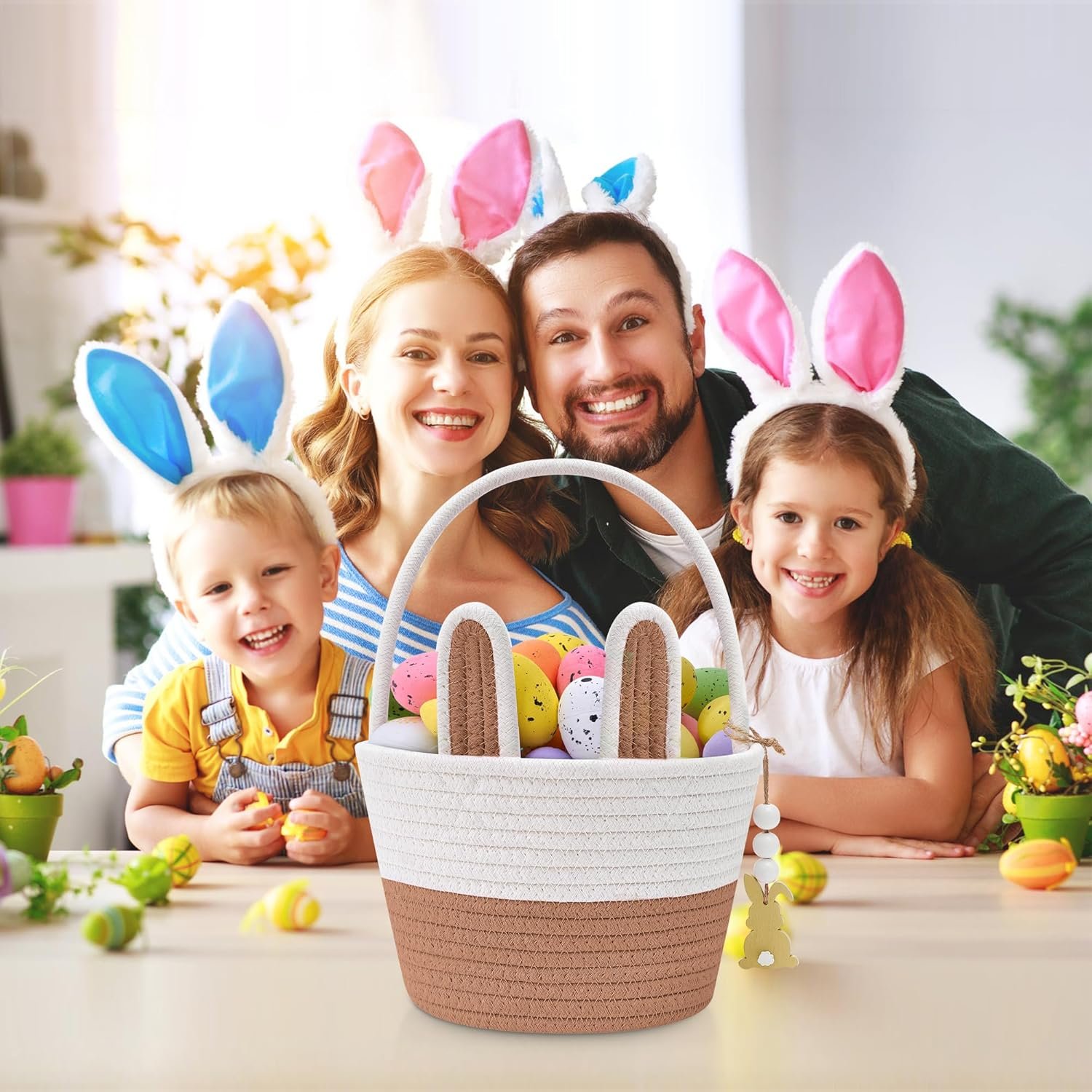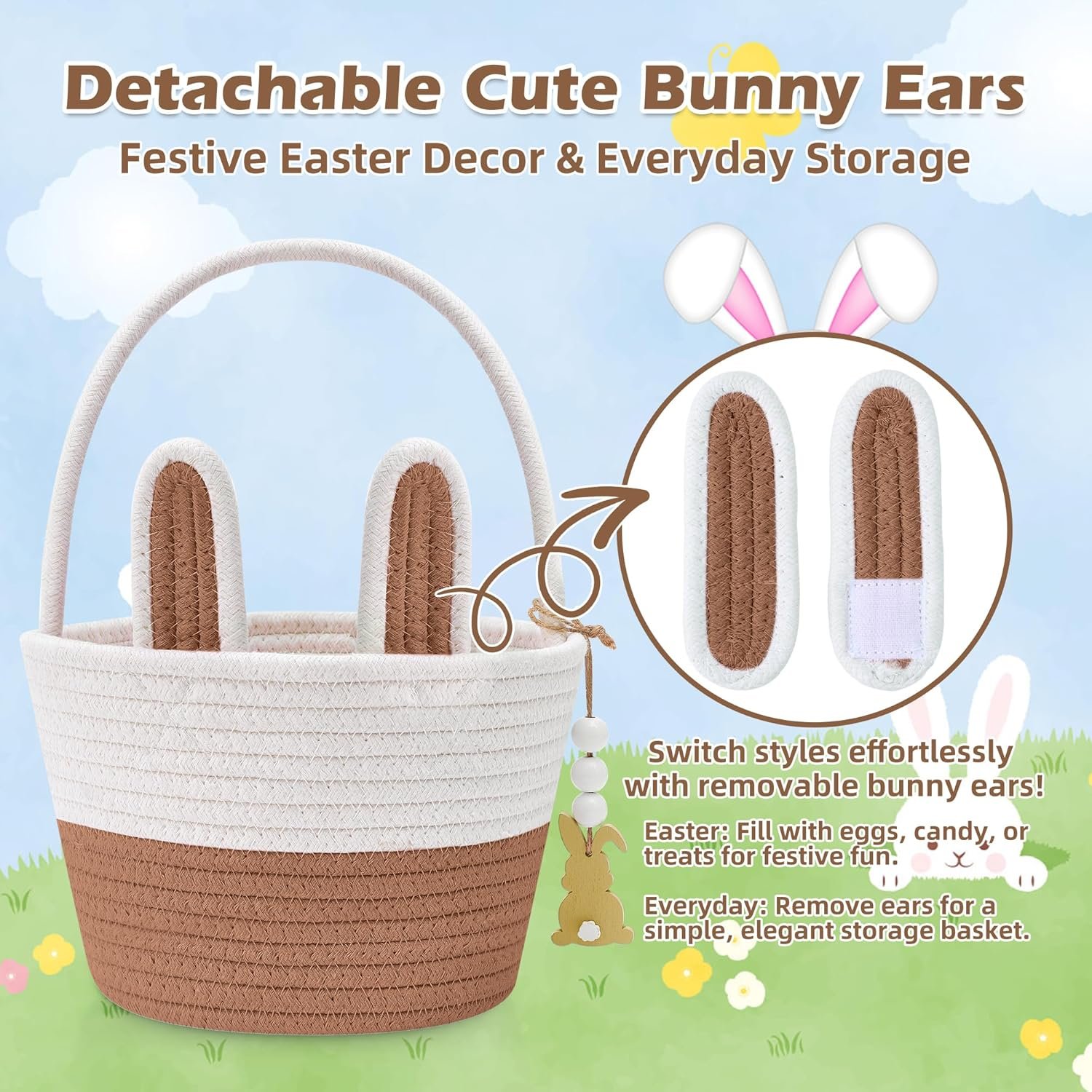 DETACHABLE BUNNY EARS: The kids Easter basket with detachable bunny ears not only increases the Easter festive atmosphere but also allows kids to continue using the basket after Easter, adding practicality and fun. Kids can decorate their Easter baskets as they like, enjoying the fun of DIY.