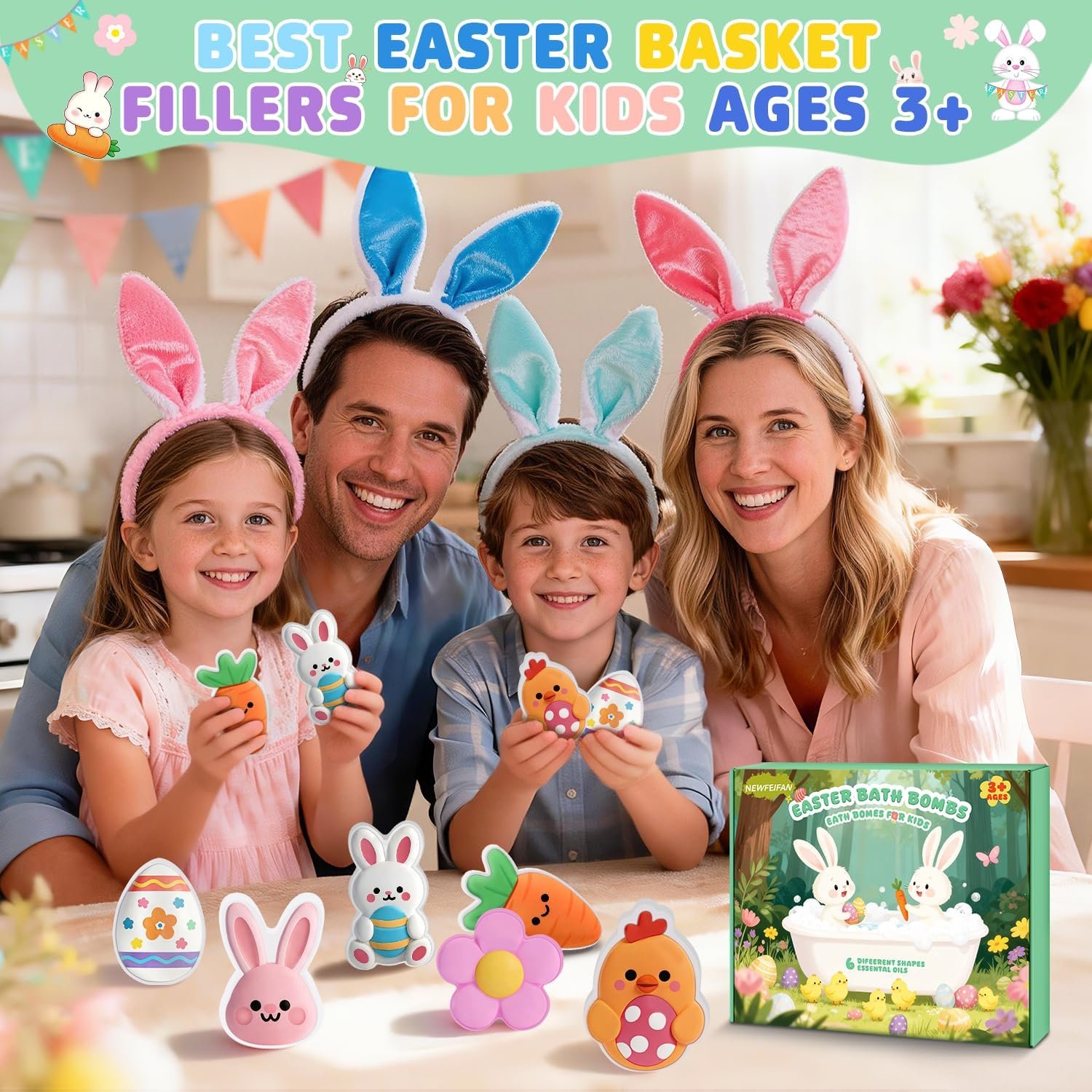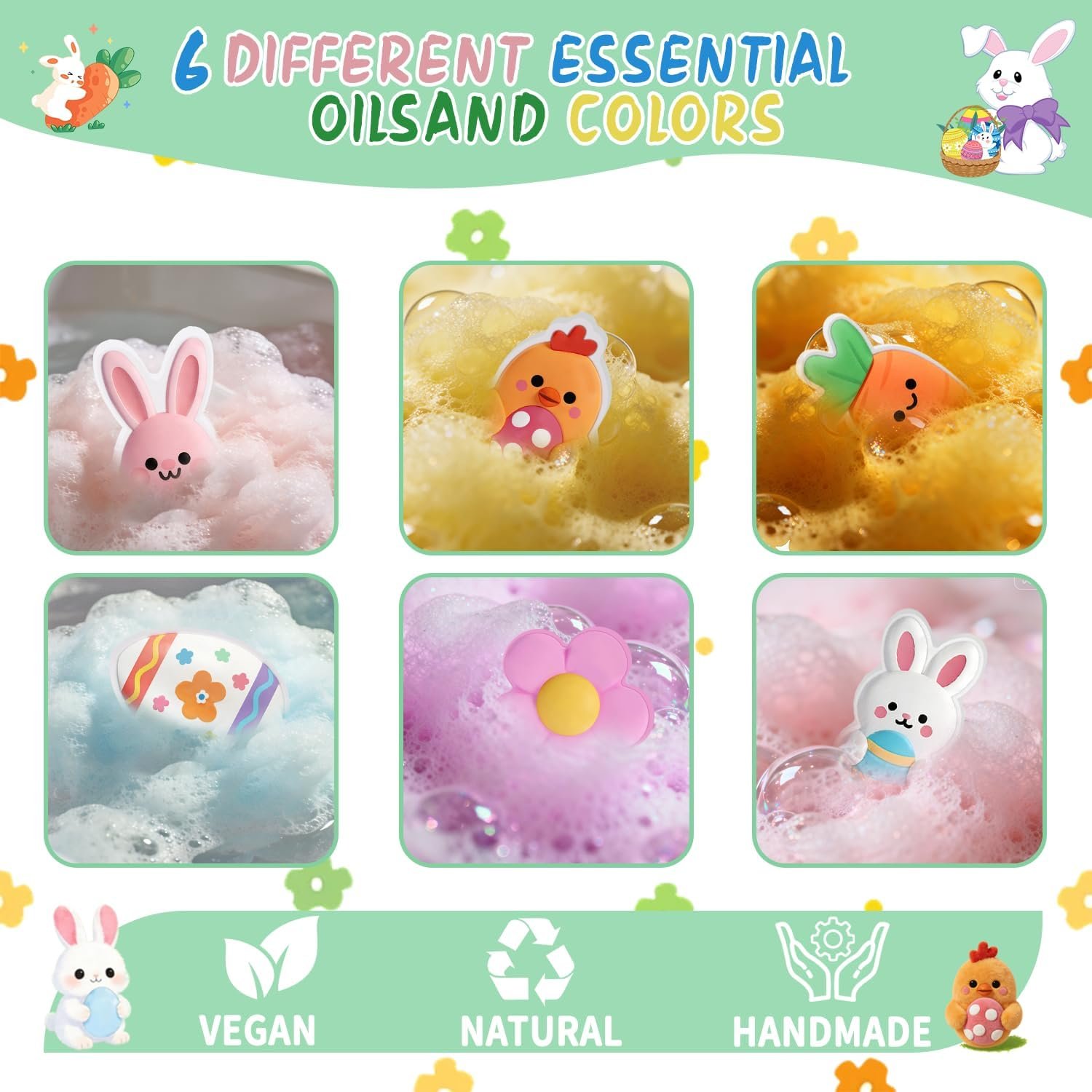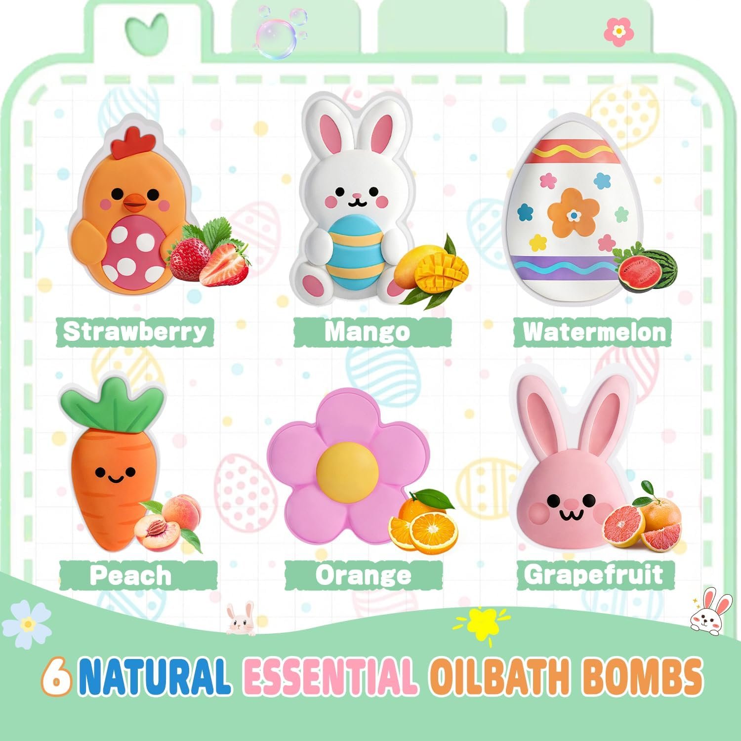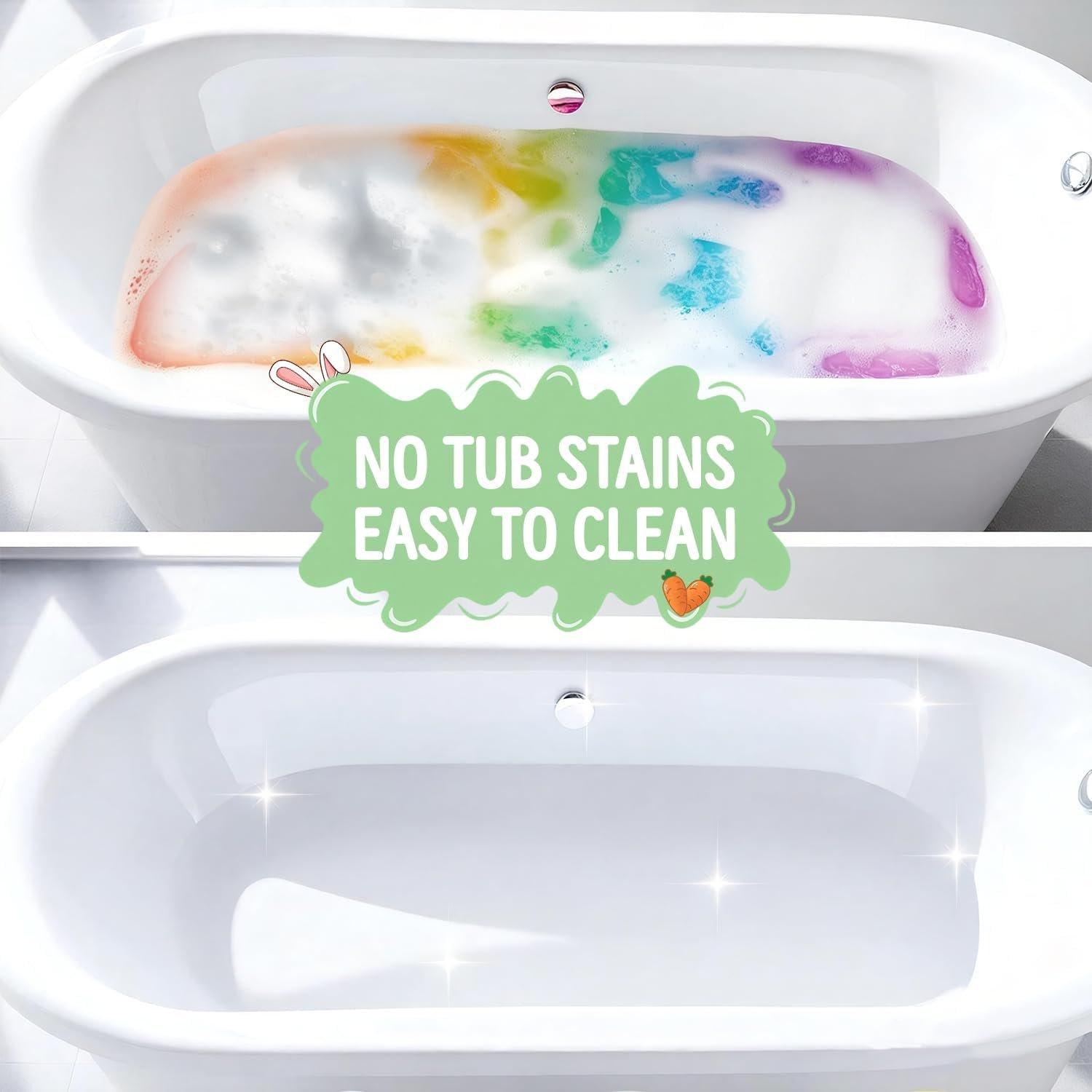 Adorable Easter-themed shapes: Cute bunny, chicken,carrot ,flower and egg designs that bring festive fun to bath time.