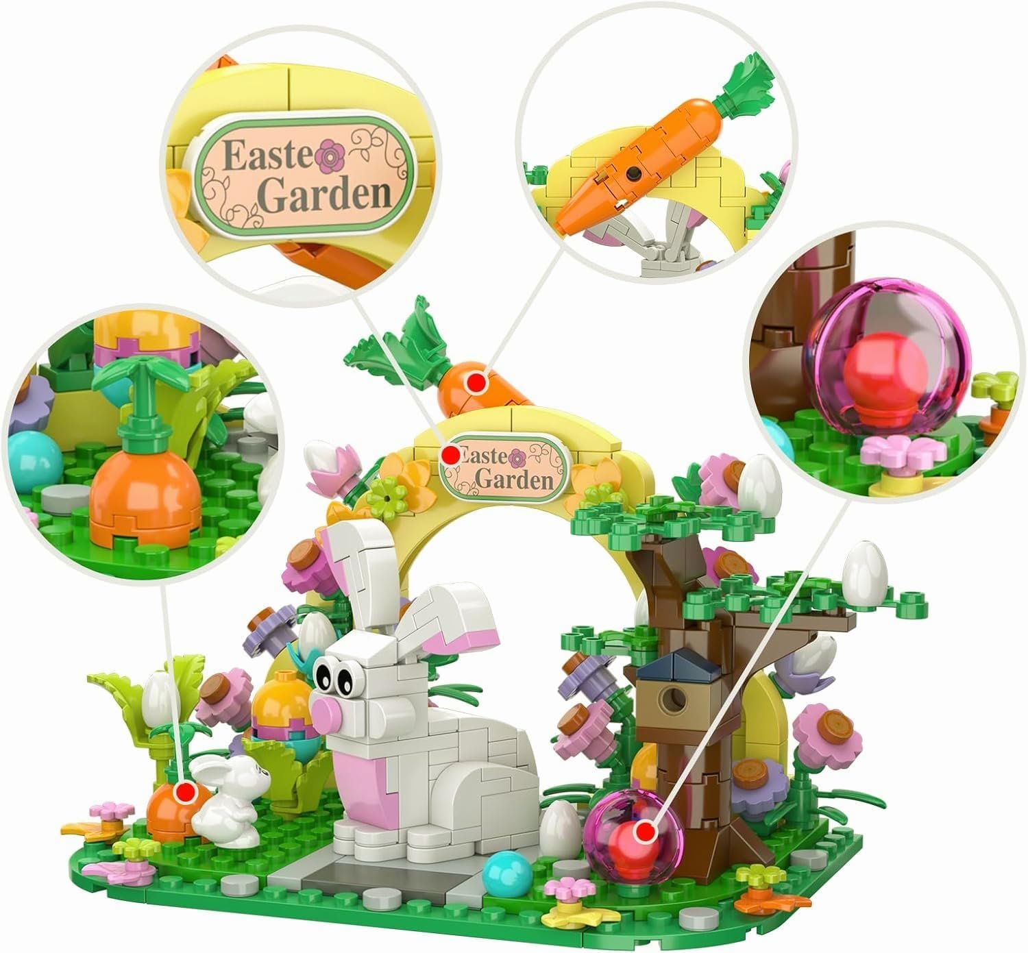【Easter Themed Garden】By opening this set of building blocks, children can personally construct a vibrant Easter garden! The bouncing rabbit, the flowering tree adorned with Easter eggs, and the flower arch. Easily create a spring game scene, where children can play Easter egg games in a pre built garden, immersing themselves in the fun of festivals and the atmosphere of spring.