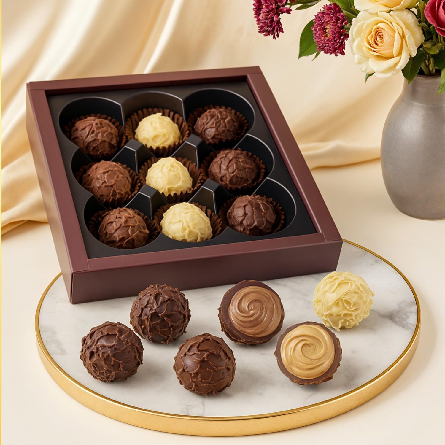 Premium Assorted Truffles: The Tammze assorted chocolate gift box is thoughtfully crafted to deliver a luxurious experience. Each truffle is carefully made with smooth chocolate shells and creamy centers, then arranged in a beautiful box that enhances enjoyment. This truffle chocolate assortment is ideal for those who appreciate fine flavors, elegant packaging and a refined tasting experience.