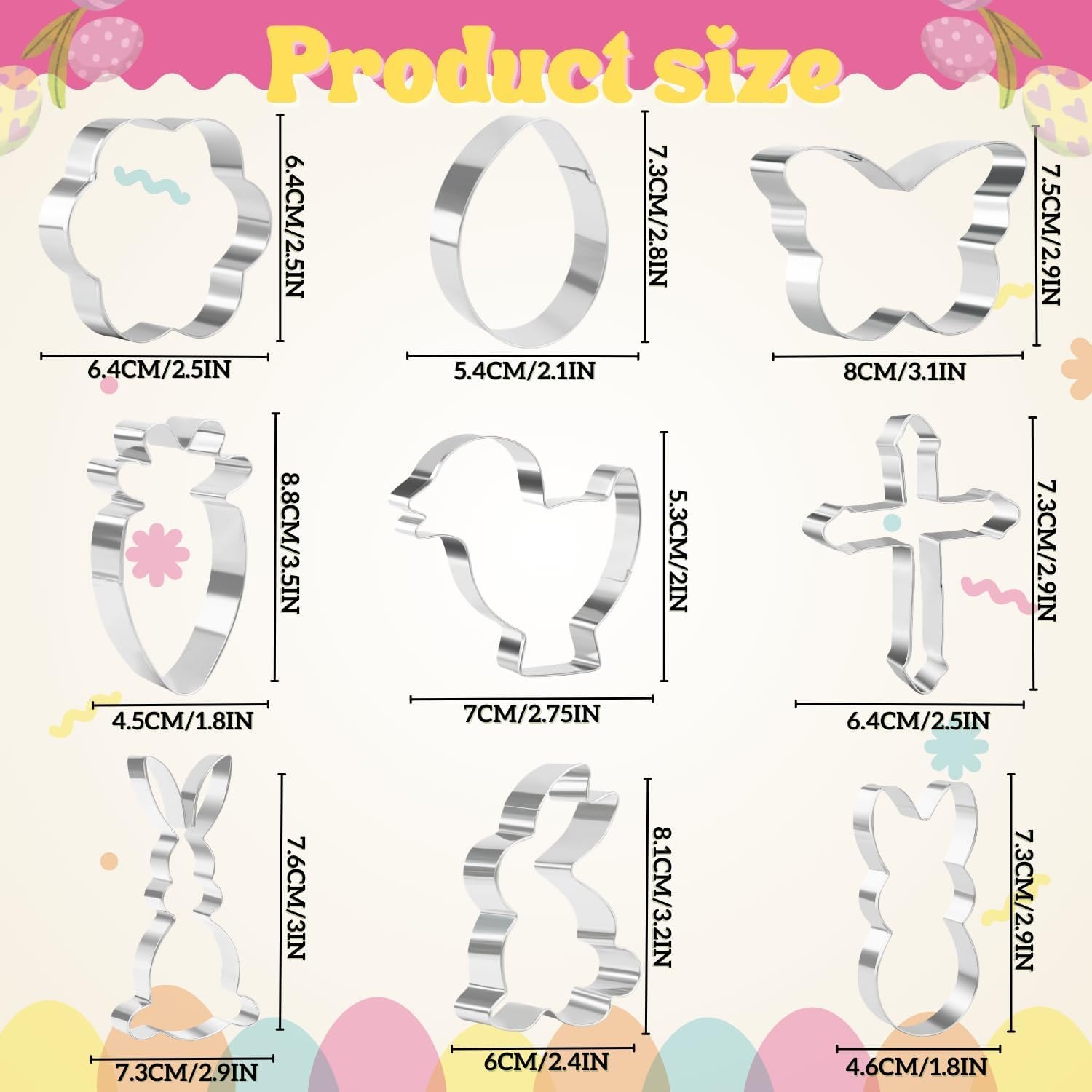 Easter Cookie Cutters, 9 Pieces Chick Carrot Egg Bunny Butterfly Rabbite Cross Flowers Shapes Metal Stainless Steel Biscuit Cutters Holiday Themed Baking Kit