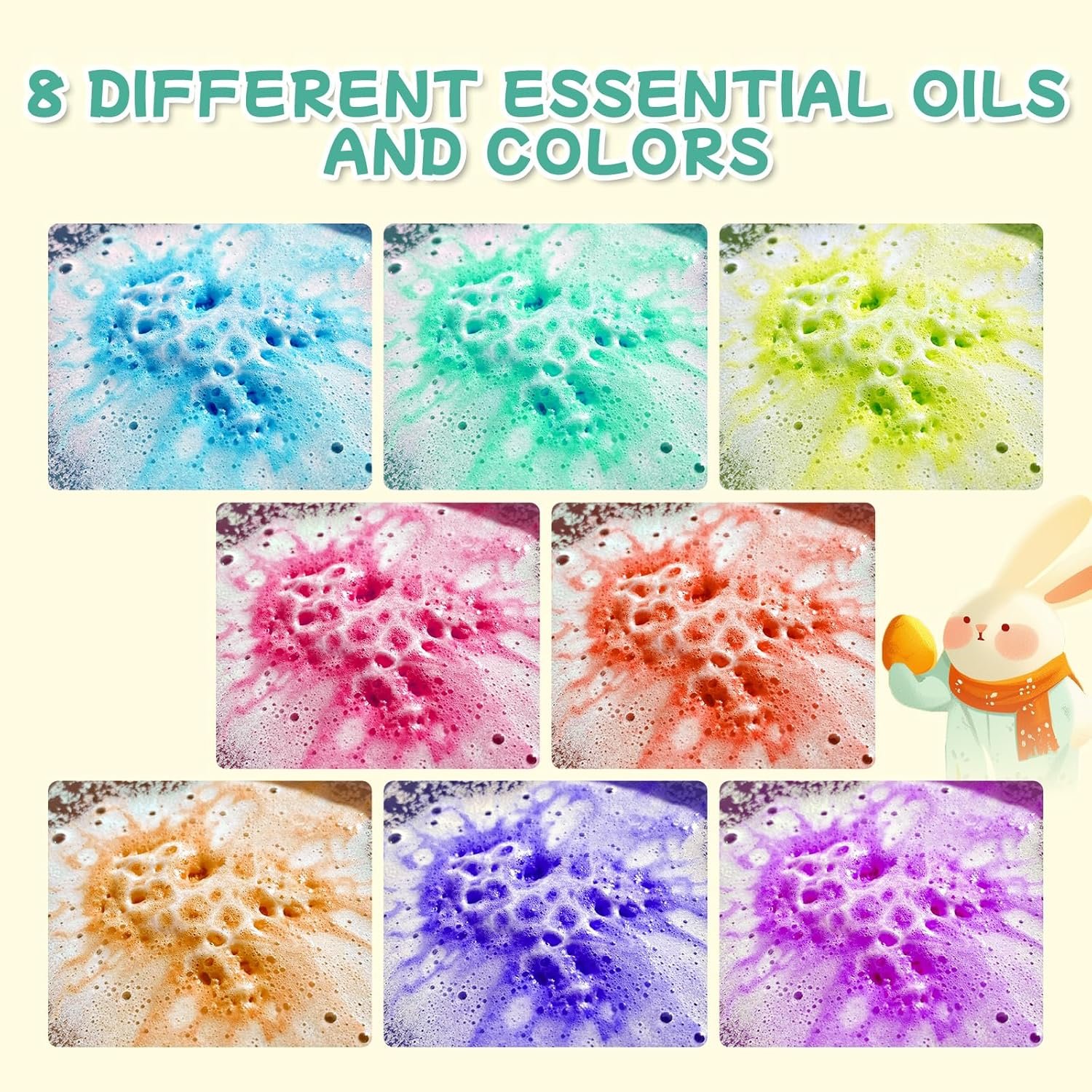 【Bath Bombs 8-PACKUNIQUELY DESIGNED WITH SURPRISE INSIDE】This set features 8 pack rabbit shape bath bombs, crafted into captivating Easter – themed forms. Adorable easter bunnies, charming chickens, and classic eggs—each is a visual treat. What’s more, every bath bomb conceals an exciting surprise, injecting extra thrill into kids’ bath time