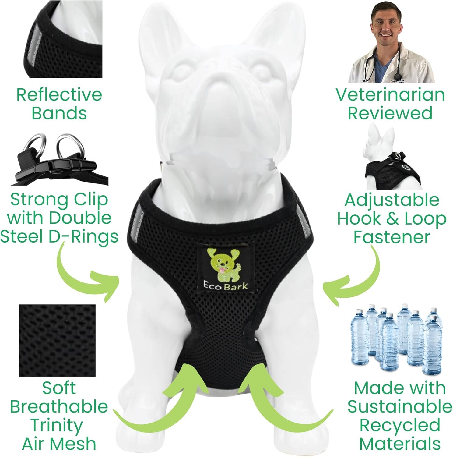 XS Black Step In Dog Harness: Specially Crafted for Tiny, Small, and Medium Breed Dogs and Puppies. EcoBark specializes in Small and Tiny harnesses, therefore our sizes only fit dogs from Teacup Breeds to Medium Breeds.