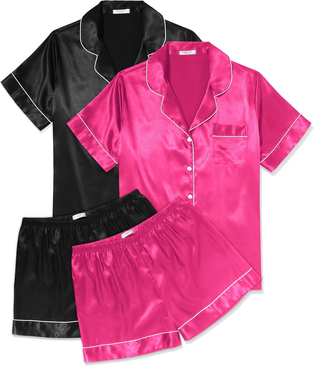 Ekouaer 2 Pack Womens Pajama Sets Silk Satin Short Sleeve Top and Shorts Pjs Set
