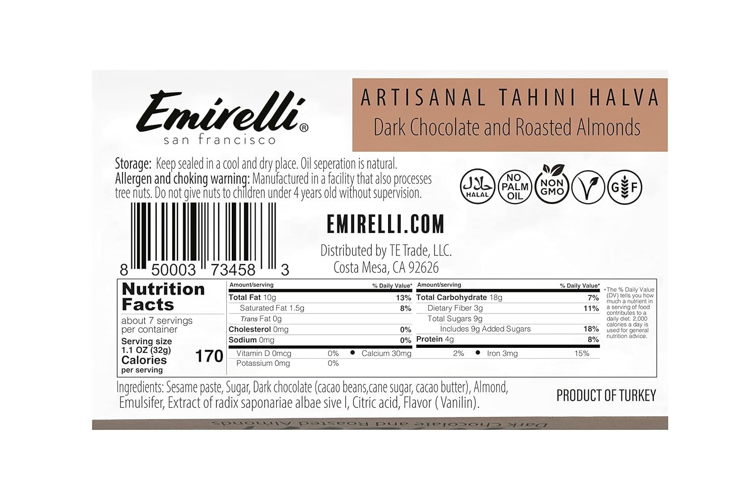 🍯 NATURALLY SCRUMPTIOUS, GLUTEN FREE, NO PALM OIL – A diet-friendly alternative to mass-produced calorie-dense sweets, marshmallows, peanut butter, candy canes, or lollipops – usually loaded with artificial flavors, fats, and preservatives. Satisfy your sweet tooth with the Emirelli tahini organic vegan treat, 100% NON-GMO, and vegetarian. For a creamier, smoother texture, it’s homemade in small batches from high-quality ingredients like Turkish sesame seeds, with a great ratio of oil to fiber.