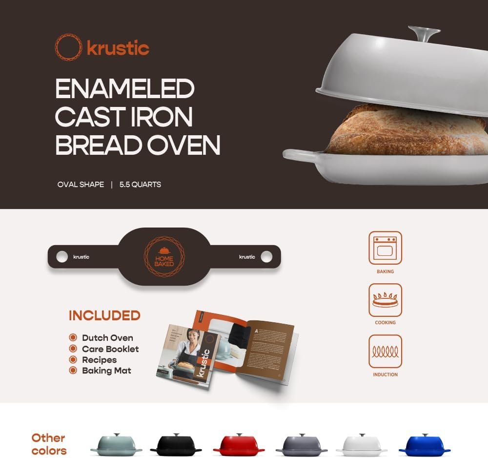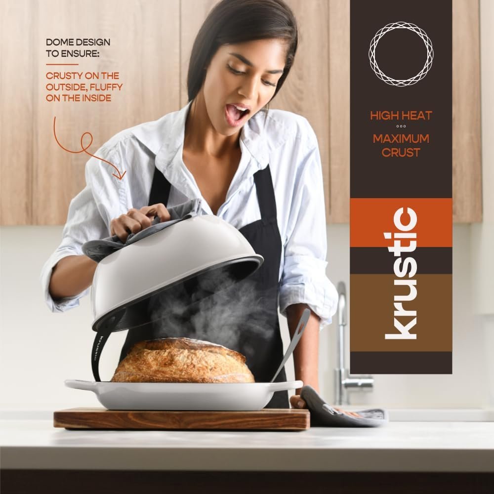PERFECT BAKING: Krustic professional dutch oven for bread baking features an innovative dome design that creates optimal steam circulation, helping your sourdough to achieve the perfect rise and golden crust every time. The specially engineered with 5.5-quart capacity and precise temperature control make this cast iron cookware essential for both novice bakers and seasoned professionals.