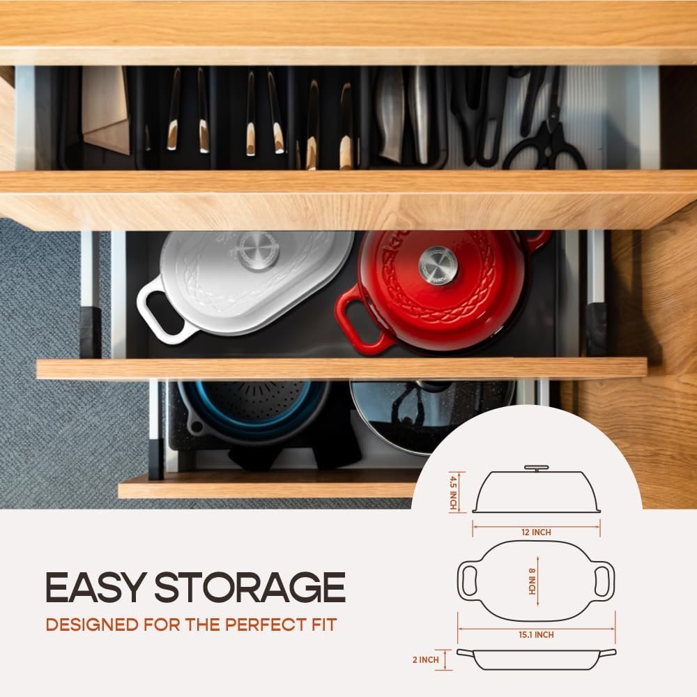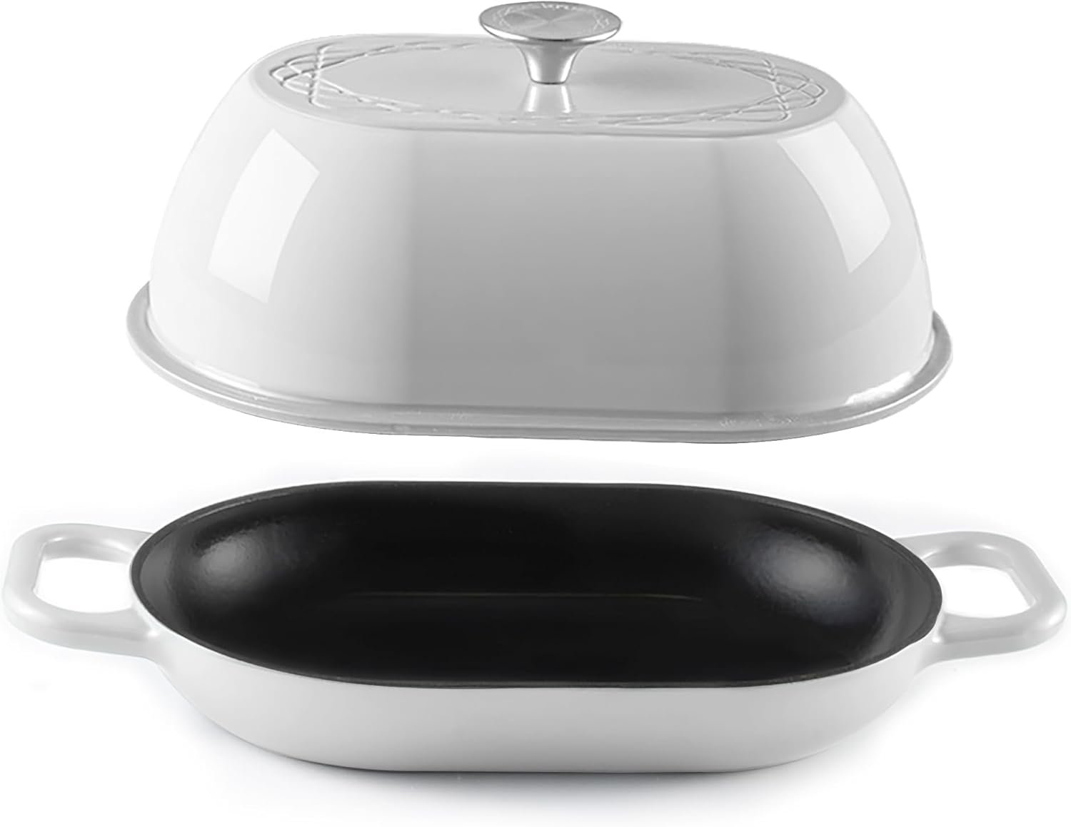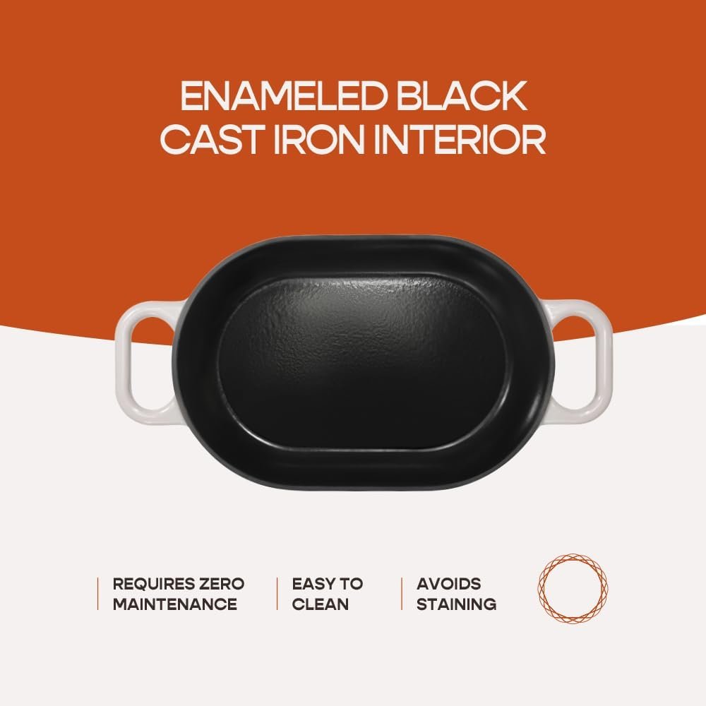 PREMIUM CONSTRUCTION: Crafted with triple-layered enameled cast iron, this loaf pan dutch oven combines superior heat distribution with lasting durability. The cast iron dutch oven premium enamel coating prevents sticking while maintaining consistent temperatures throughout the baking process. The oval dutch oven pot with lid shape and carefully calculated dimensions provides optimal space for dough expansion and crust formation.