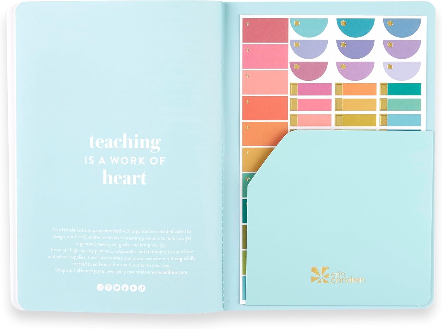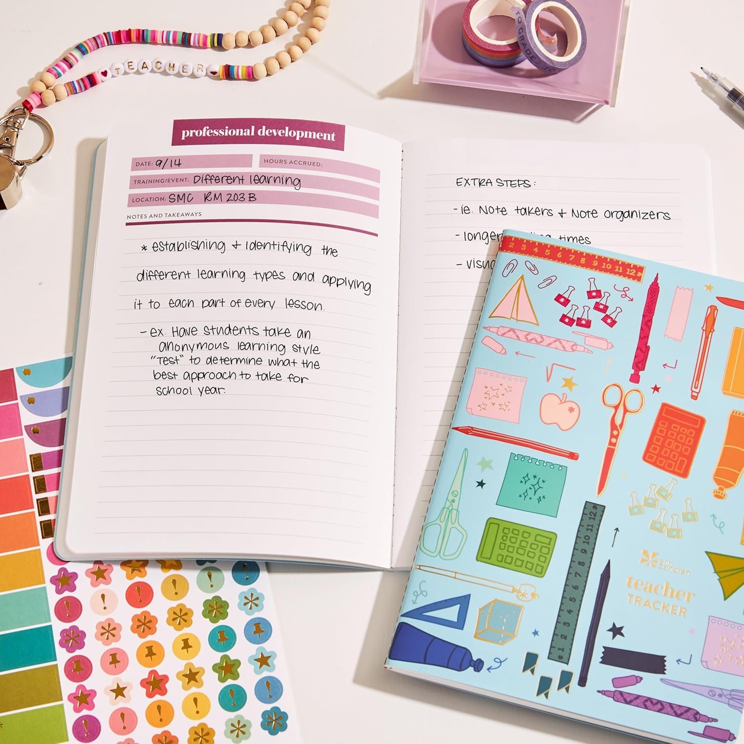 The Teacher Tracker Petite Planner is a must-have school supply for every teacher. With exclusive content not found in other teacher planners, this petite planner allows you to track expenses, log professional development records, write notes, and keep tabs on extracurricular and committee responsibilities. Its convenient travel size makes it perfect for on-the-go organization, ensuring that this school year will be your most organized one yet. The high-quality materials and sewn-stitch binding guarantee durability, while the built-in pocket and sticker sheet add a touch of creativity to your planning experience.