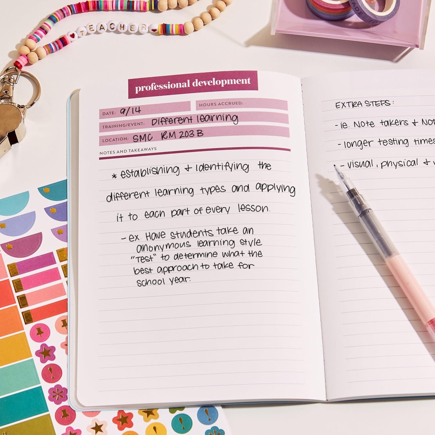Stay organized: Track expenses, professional development, notes, and extracurricular/committee responsibilities in one compact planner.