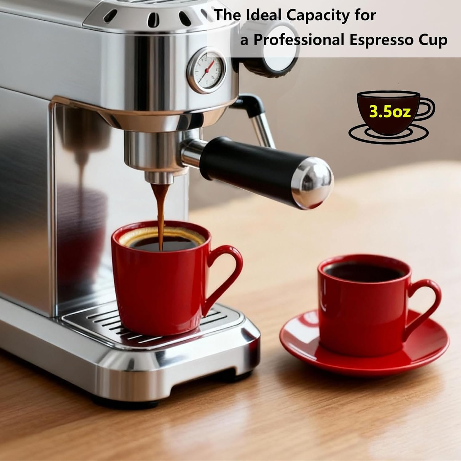 Why 3.5oz? The Design Philosophy – This espresso cups large enough to stir comfortably, yet compact enough to enjoy your espresso before it cools. Featuring a gently tapered rim to concentrate aroma and thick-walled ceramic construction (or preheated use) for optimal temperature retention.