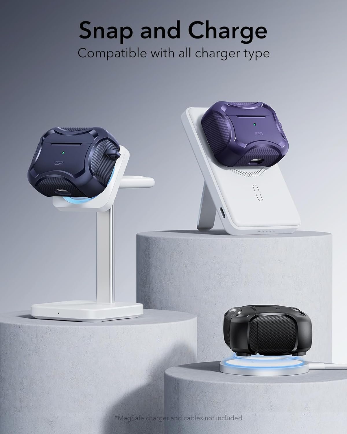 MagSafe Ready: strong magnets in the back of the case ensure a secure lock on MagSafe chargers, letting you enjoy tap-and-go wireless charging for your earbuds