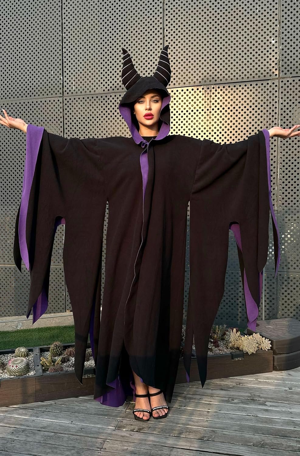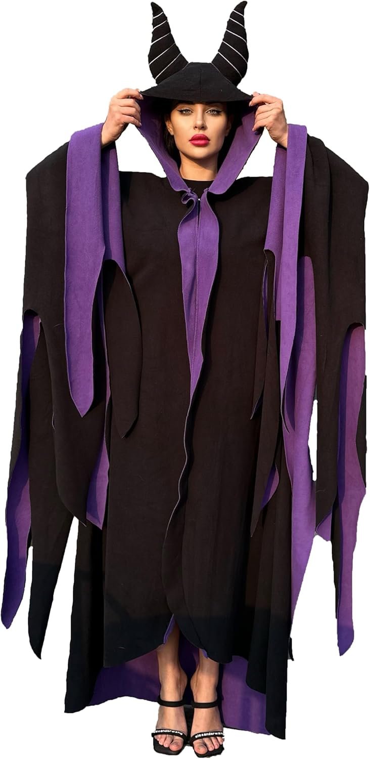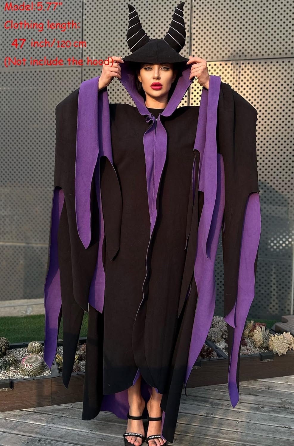 Women’s Evil Witch Queen Cloak costume woman halloween costumes adult costumes sleeping beauty costume adult Witch Cloak Costume Women Halloween Cosplay with Hooded Open Front Coat Fleece