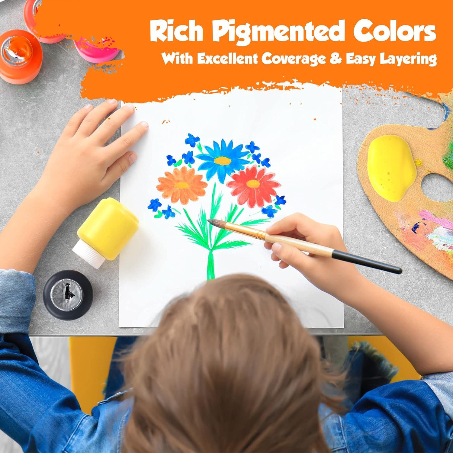 Kid-Sized bottles with secure caps – paint set for kids with leak-proof twist top caps prevent spills and keep paint fresh for longer shelf life.
