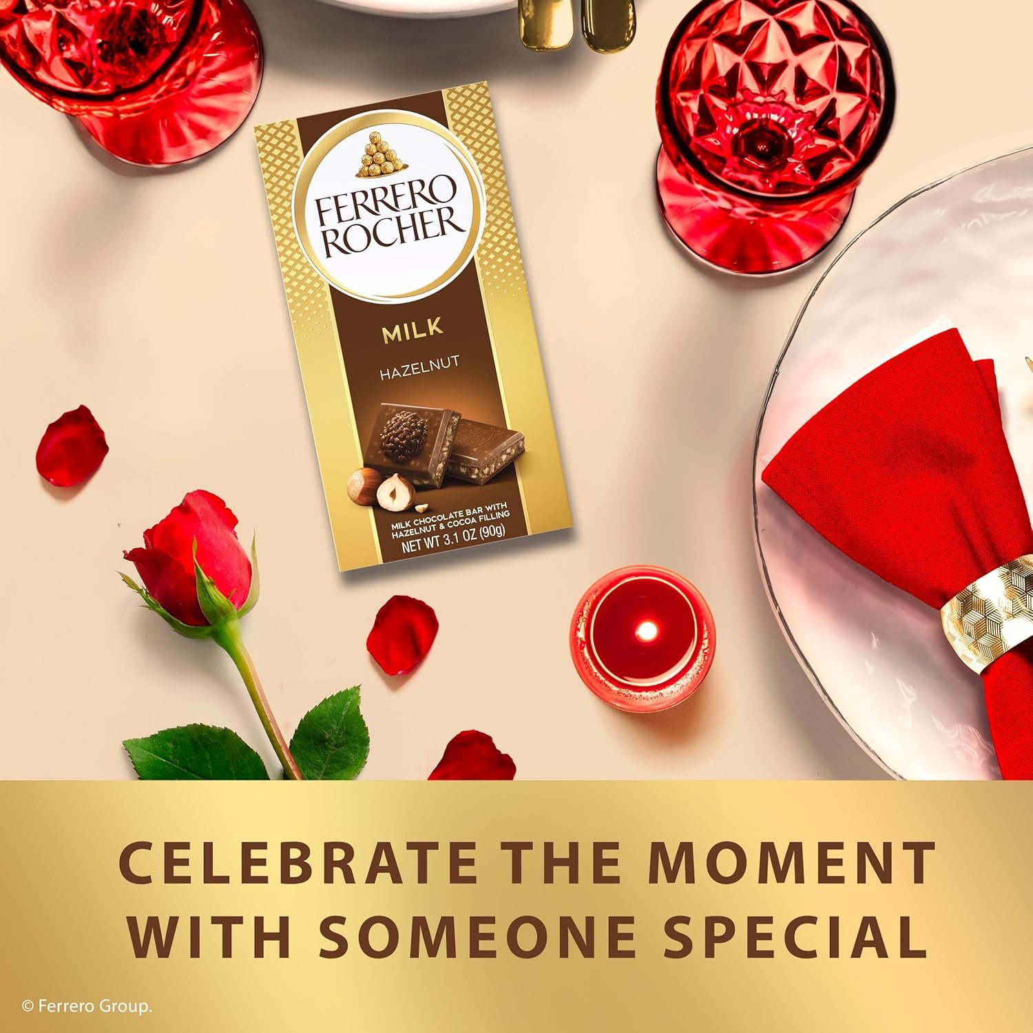 Ferrero Rocher Milk Chocolate Hazelnut Bar, with Cocoa Filling , Valentine’s Day Chocolate Gift, 3.1oz