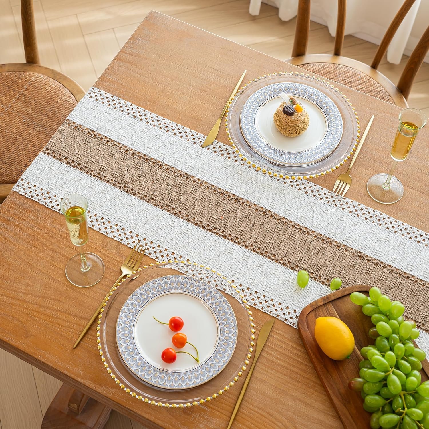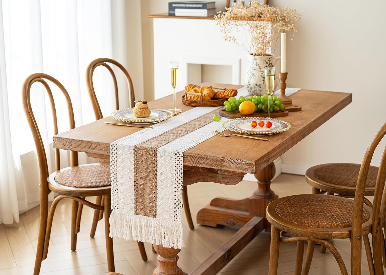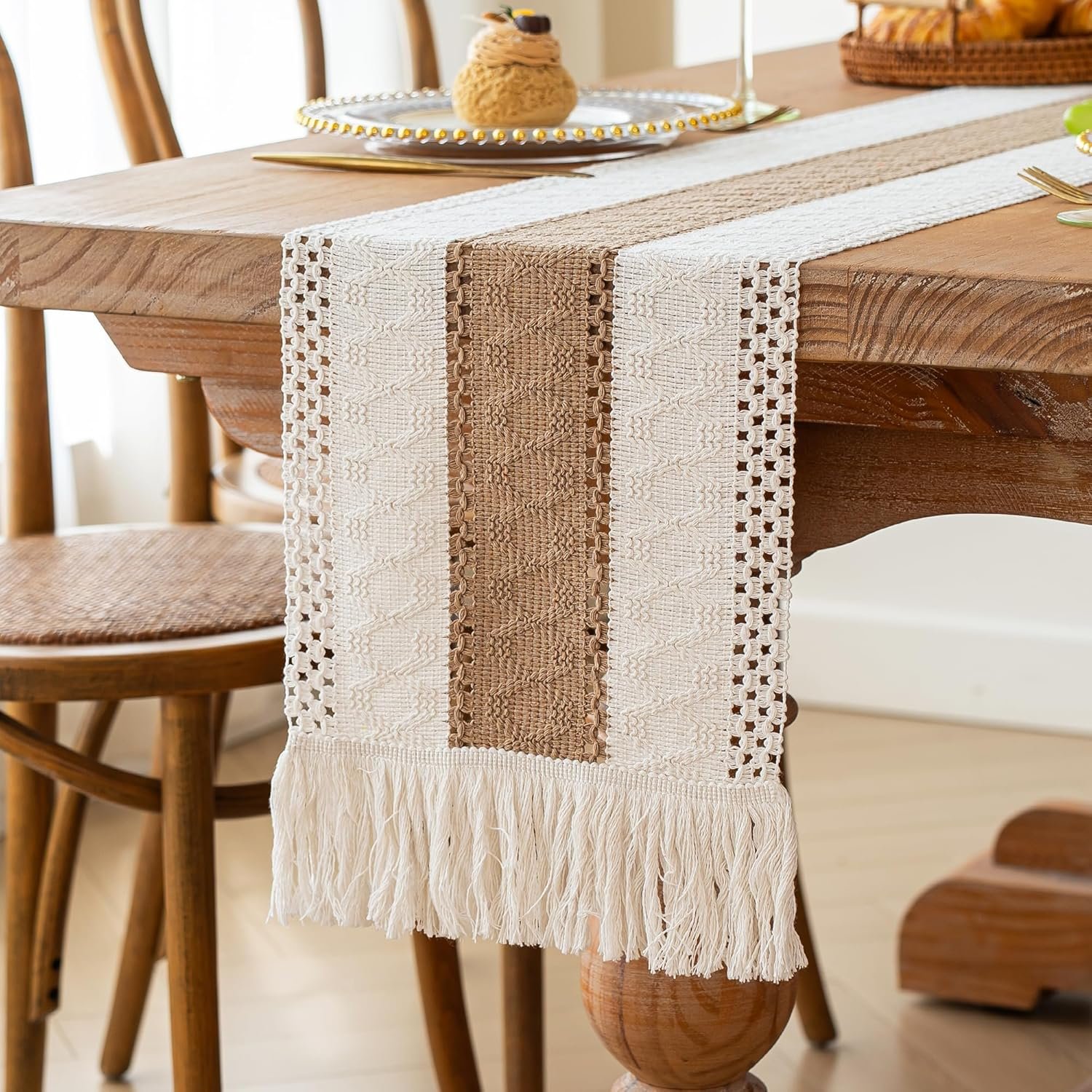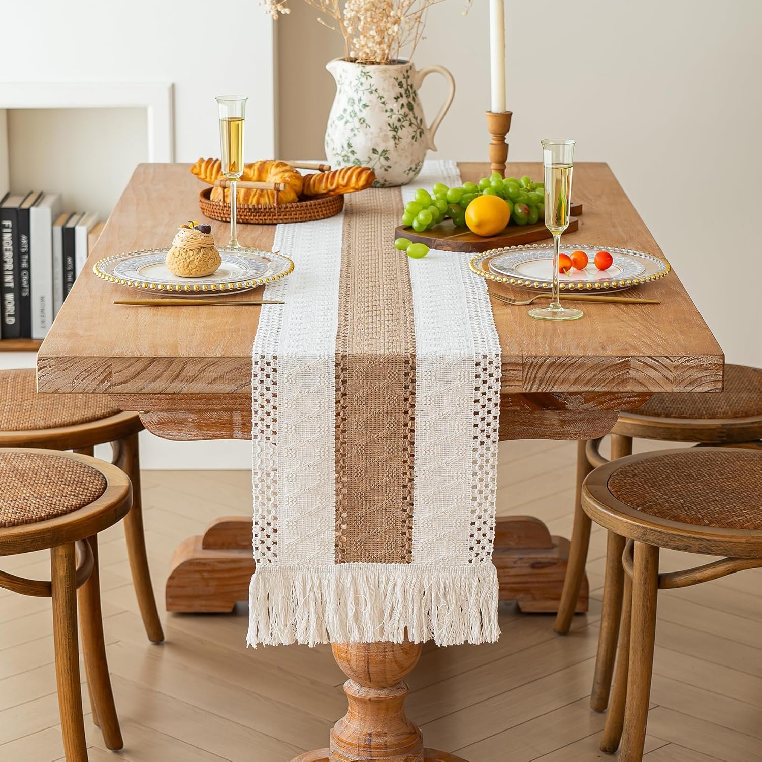 [Boho Home Decor]: The farmhouse table runner is not only suitable for boho dining room decor,house decor,kitchen decor, bedroom decor, book desk, storage table, coffee tables, but also good for piano top, TV stand, bookshelf and more place.