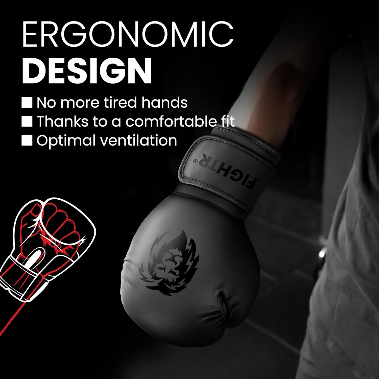 MAXIMUM STABILITY – Our boxing gloves men provide perfect support for hand and wrist, thanks to ergonomic design and reinforced closure – ideal for intense training sessions. For men & women